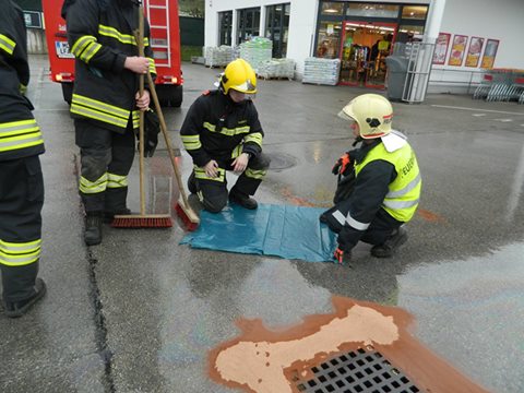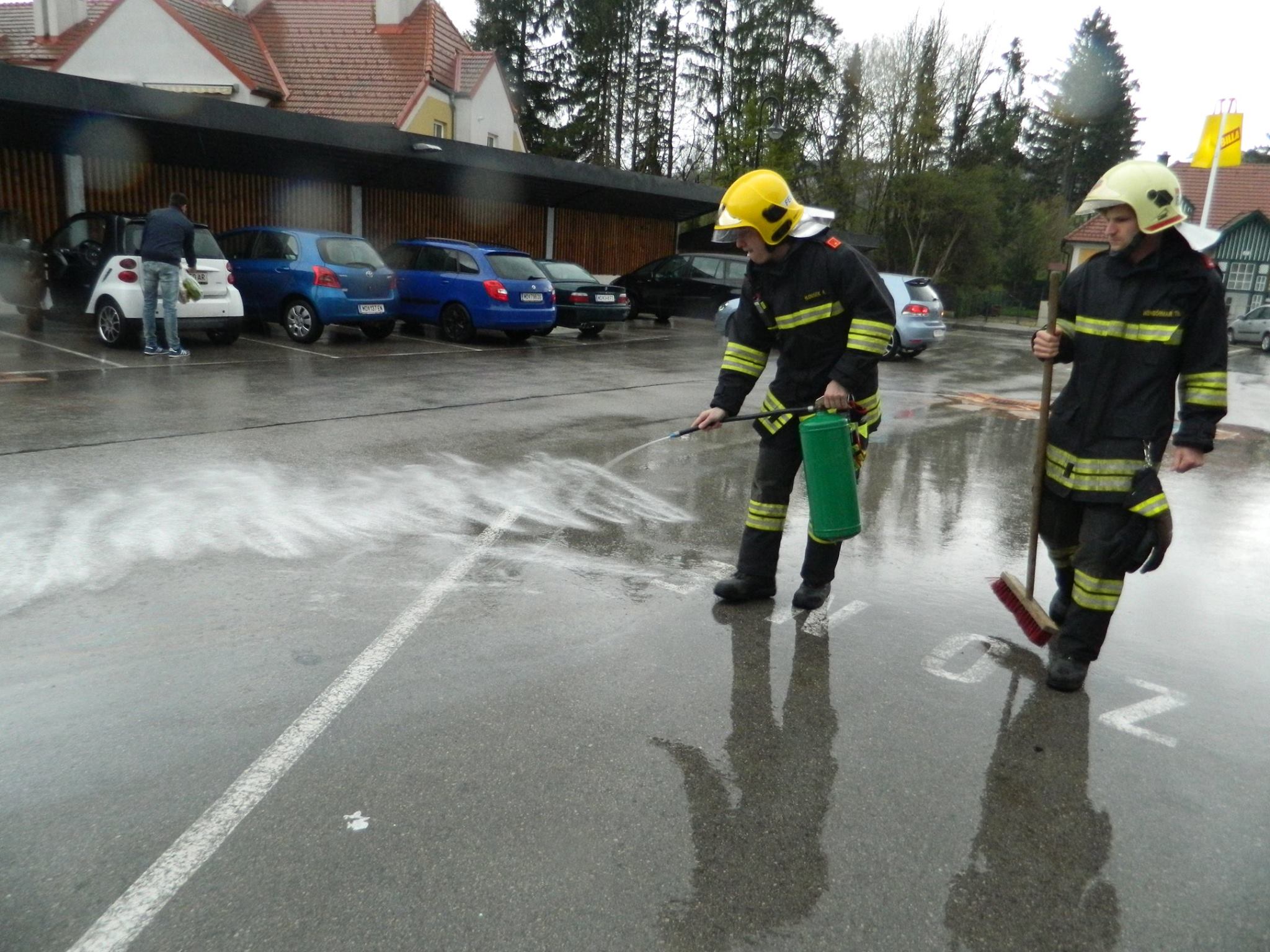 Ein Kraftstoffaustritt am Parkplatz eines Lebensmittelgeschäftes sorgte heute für einen Einsatz der Freiwilligen Feuerwehr Gaaden. Aus einem defekten PKW dürfte Benzin ausgelaufen sein, jedoch war kein Verursacher an der Einsatzstelle anwesend. Nachdem wir den Treibstoff mittels Bioversal neutralisiert und mit Ölbindemittel gebunden hatten, reinigten wir die Fläche mit einem Hochdruck-Rohr. Nach circa einer Stunde konnten wir den Einsatz beenden und wieder einrücken.
