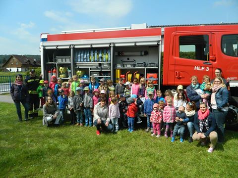 Der Besuch der Feuerwehr im Kindergarten ist für die Kleinsten immer das Größte! Neben der Brandschutzfrüherziehung mit den Notrufnummern der Einsatzorganisationen sowie der Wirkung eines Brandes, wurde auch die Funktionsweise eines Feuerlöschers erklärt. Unser neues HLF3 mit dem integrierten Frontwasserwerfer – von den Kindern liebevoll „Wall-E“ getauft – war das Highlight am Abschluss unseres Besuches.