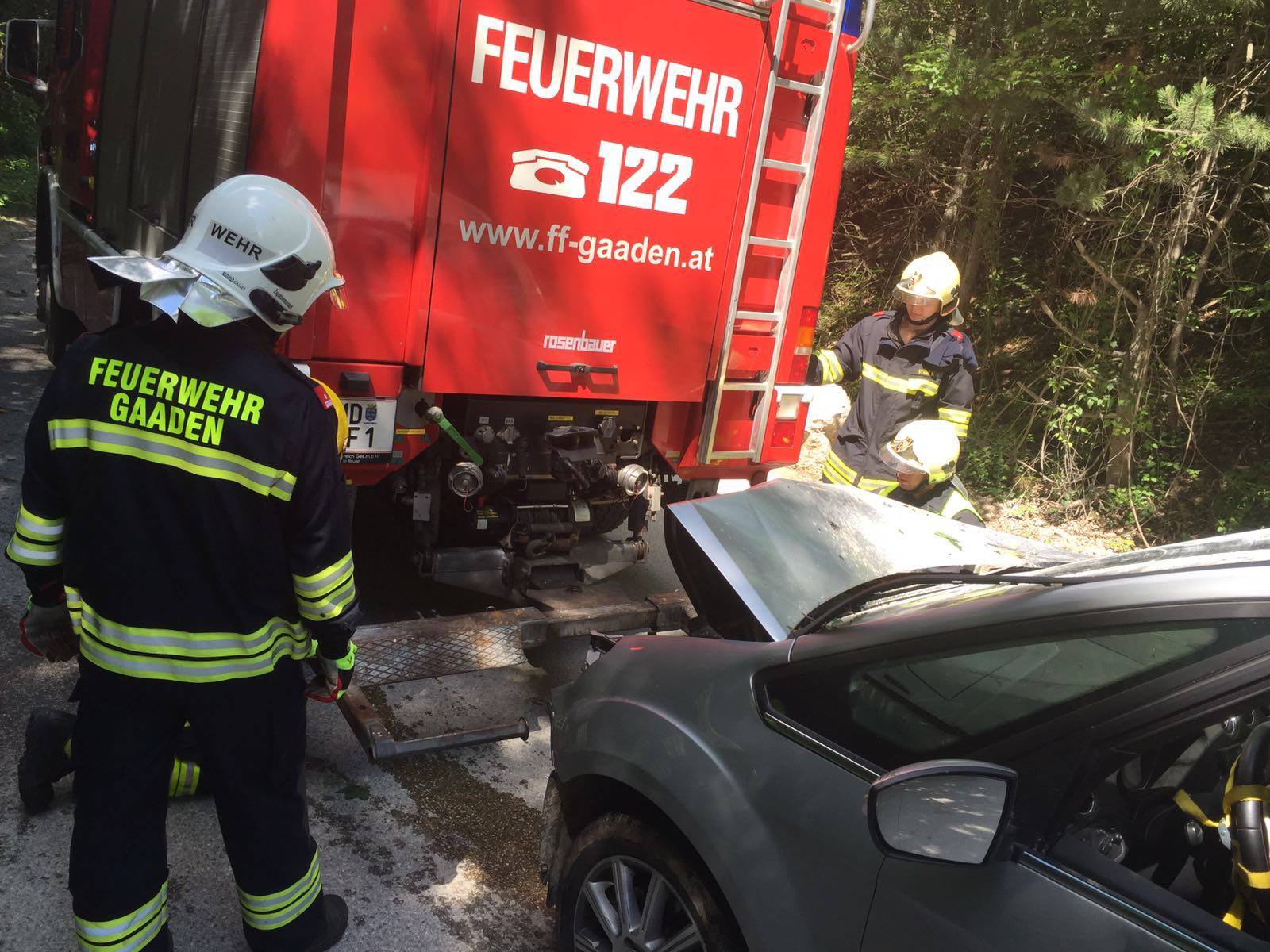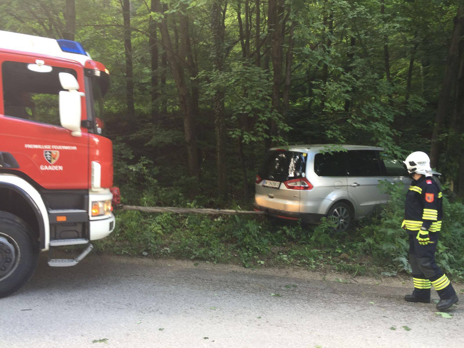 Um 10:51 Uhr wurden wir am 3. Juni 2016 zu einer Fahrzeugbergung am Steinbruch alarmiert. Ein abgestellter PKW fing ohne Fahrer zu rollen an und krachte auf Grund der steilen Straße frontal gegen einen Baum. Wir führten die Bergung des Fahrzeuges sowie die Reinigung der Straße durch und konnten nach einer knappen Stunde unseren Einsatz beenden.