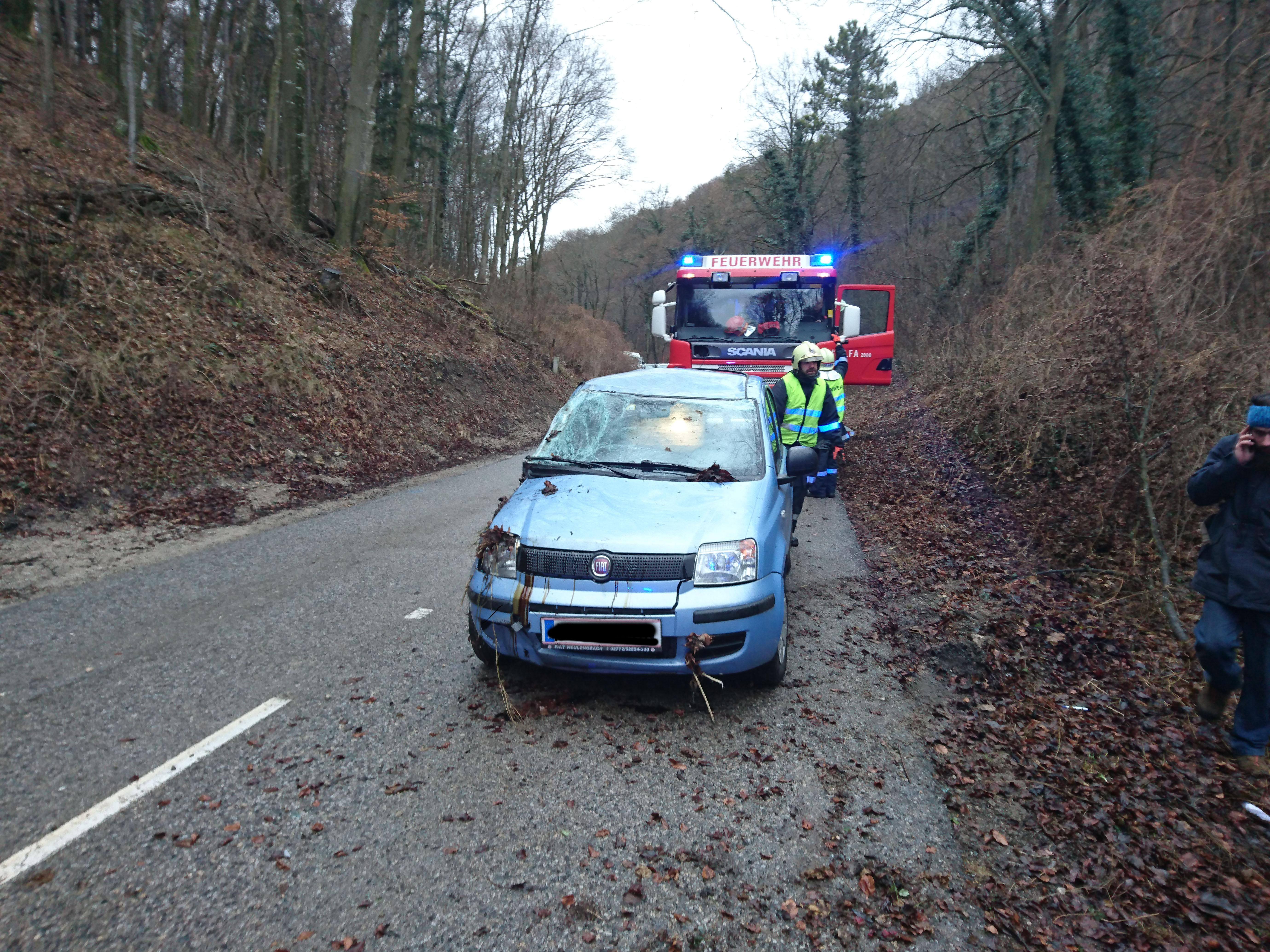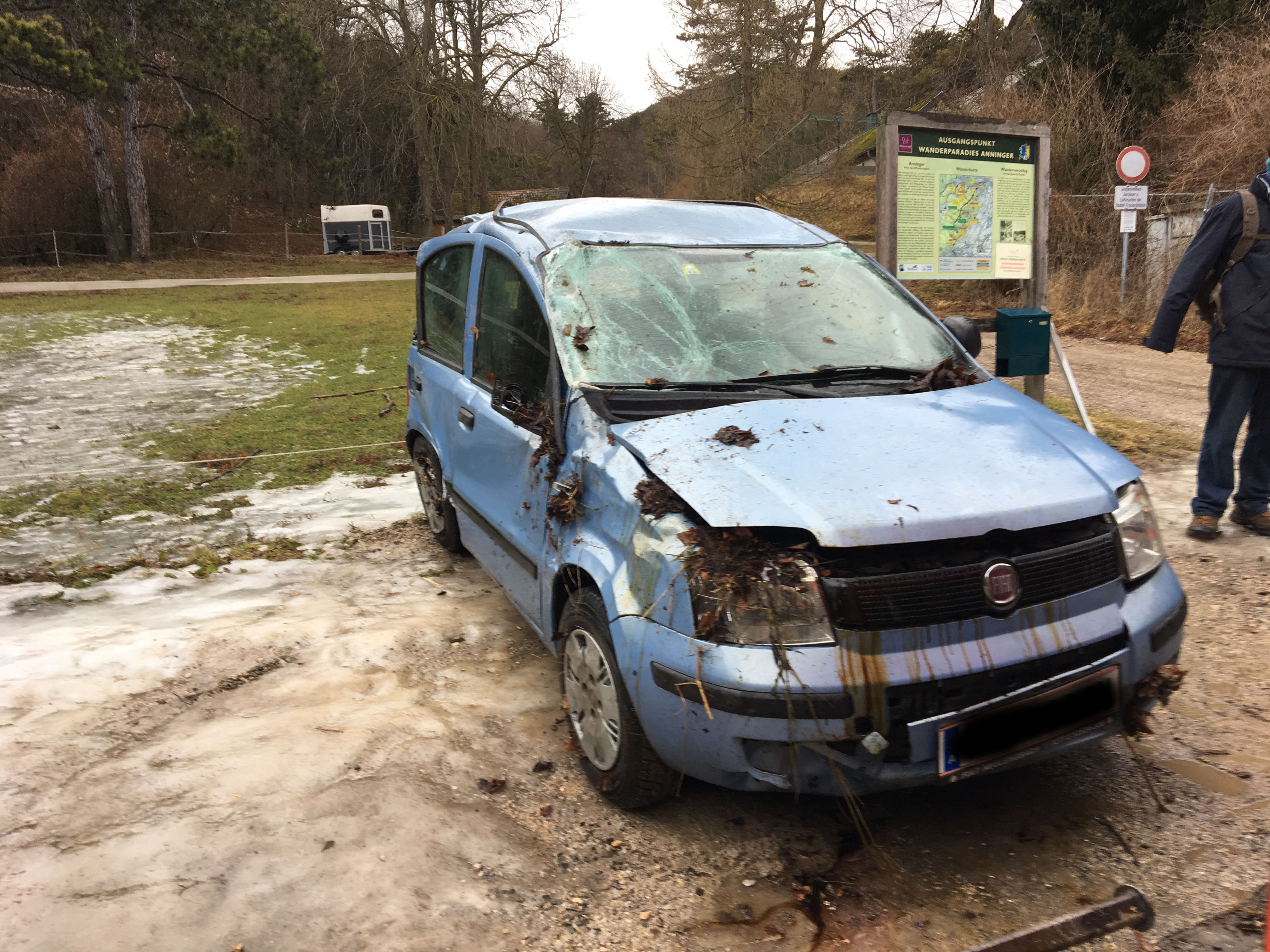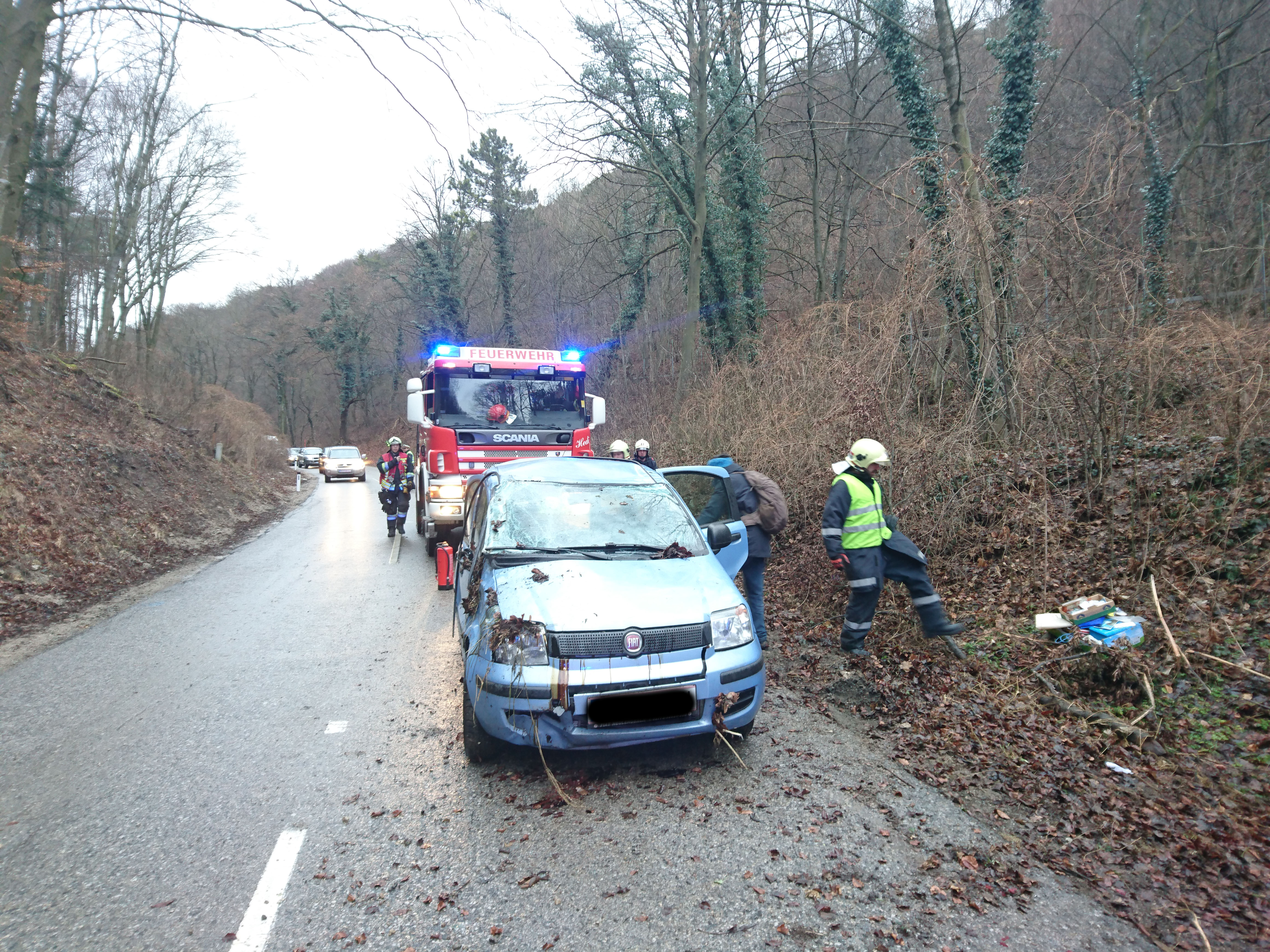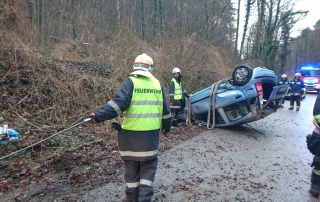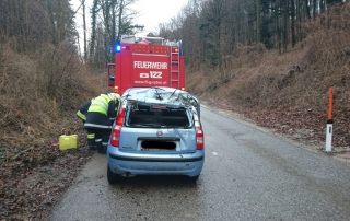 Der Lenker des Fiat verlor aus unbekannter Ursache die Kontrolle über sein Fahrzeug, welches sich überschlug und am Dach zu liegen kam. Er blieb bei diesem Unfall unverletzt.
