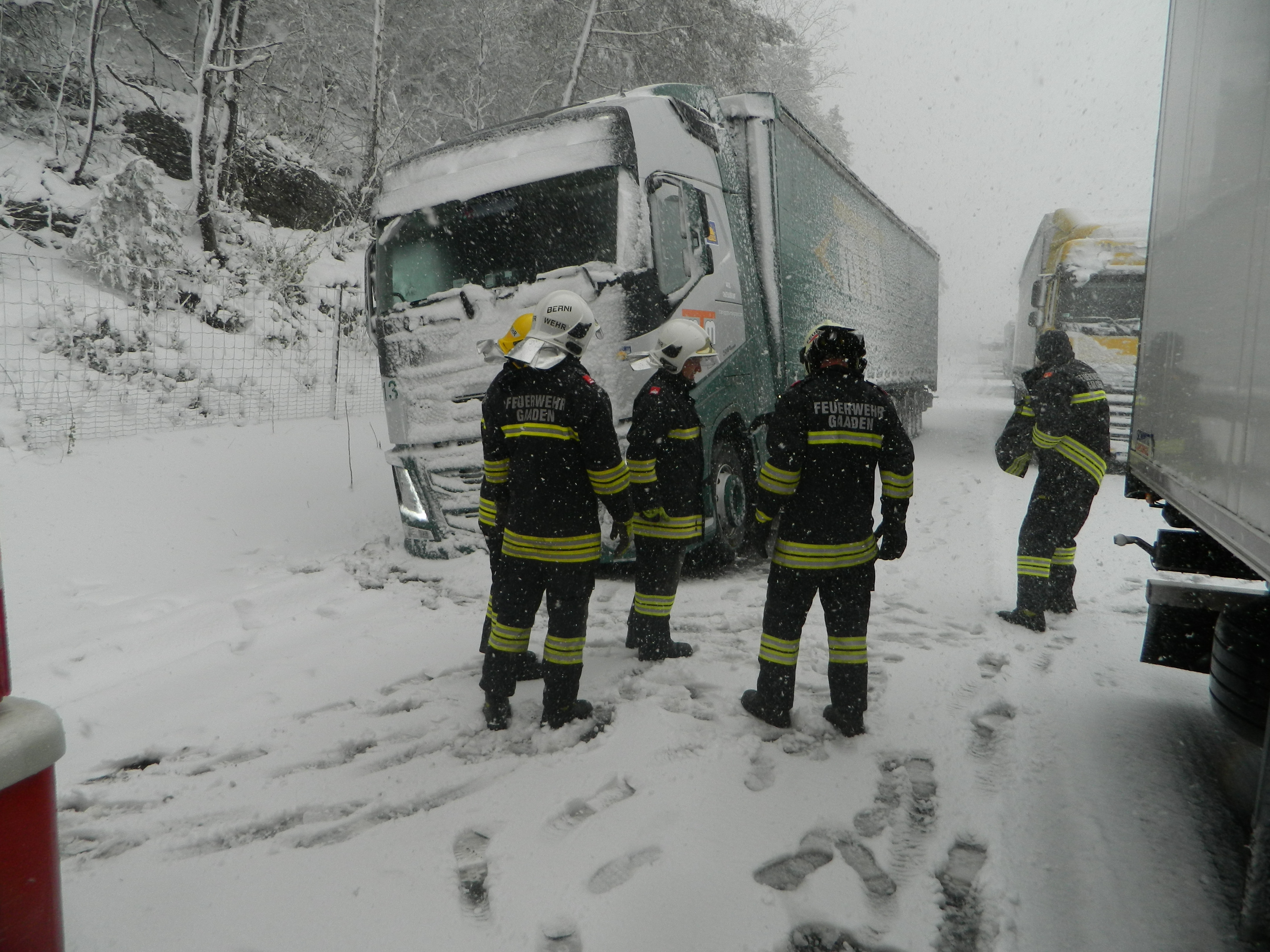 Der starke Schneefall sorgte für ein totales Verkehrschaos auf beinahe allen Straßen. Die Autobahn A21 und die L4010 in Richtung Baden mussten aufgrund der winterlichen Straßenverhältnisse gesperrt werden. Viele Autofahrer waren bereits mit Sommerreifen unterwegs und blieben im Schnee stecken. LKW`s mussten von der B11 in Richtung Heiligenkreuz von uns aus dem Schnee gezogen werden.