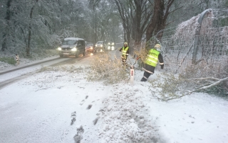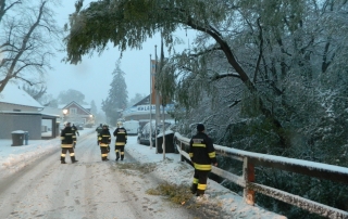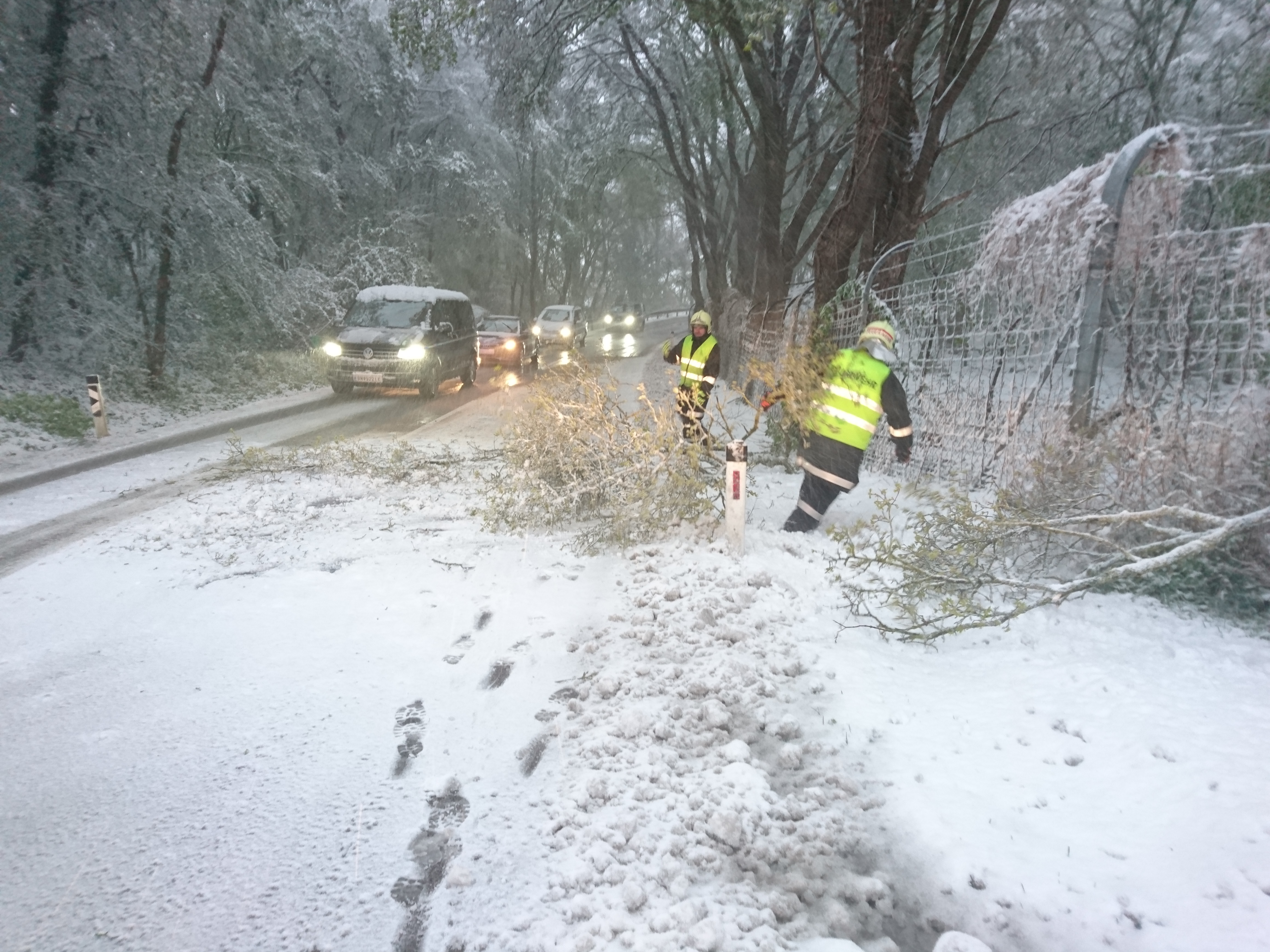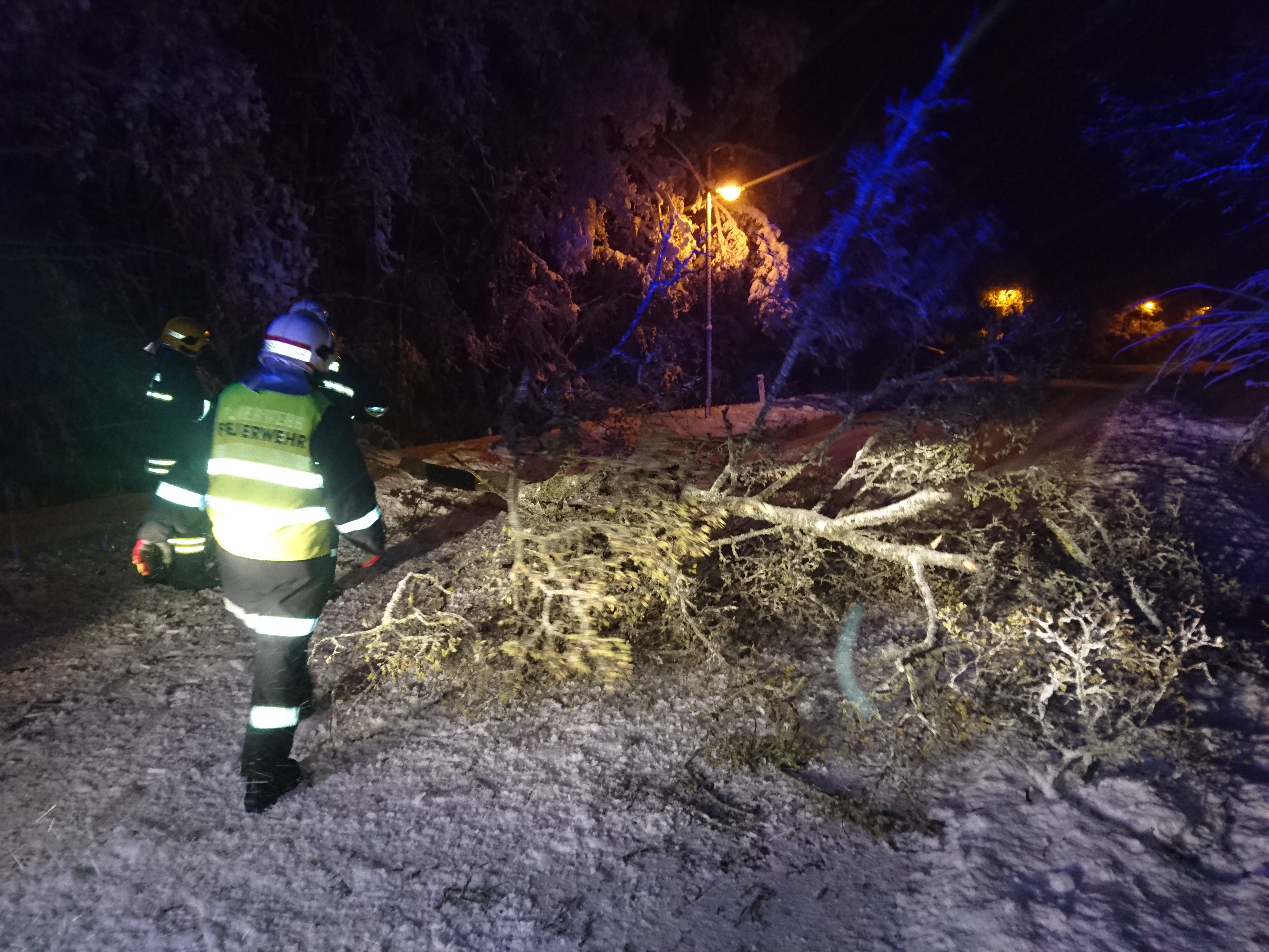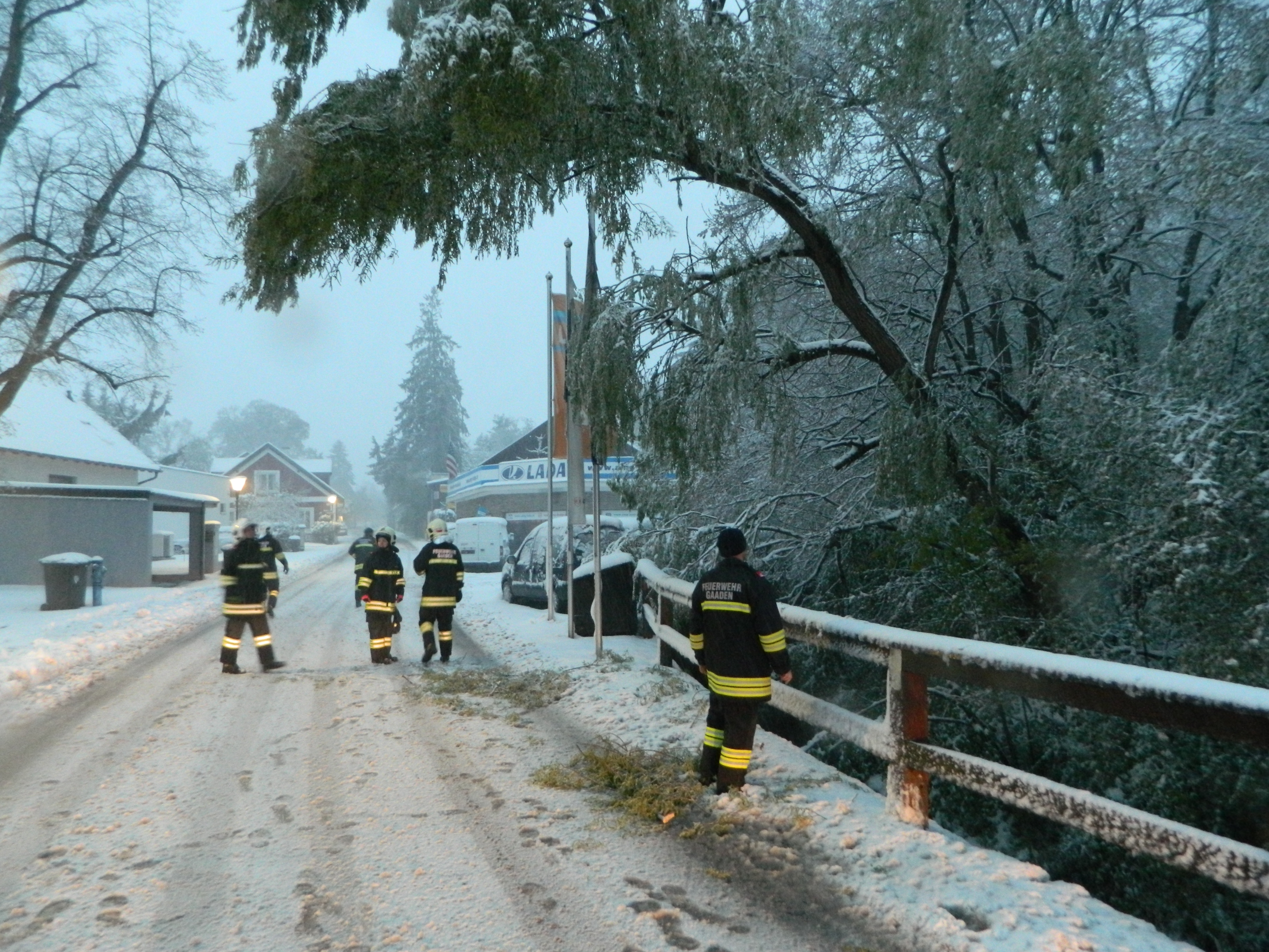 Der Wintereinbruch Mitte der Woche forderte die Freiwilligen Feuerwehren in ganz Niederösterreich. Auch wir, die Freiwillige Feuerwehr Gaaden, waren ab circa 16:45 Uhr im Dauereinsatz. Unzählige Bäume waren durch den Schweren Schnee auf die Straßen gebrochen und mussten von uns entfernt werden. Ein Baum stürtzte sogar auf ein Hausdach.