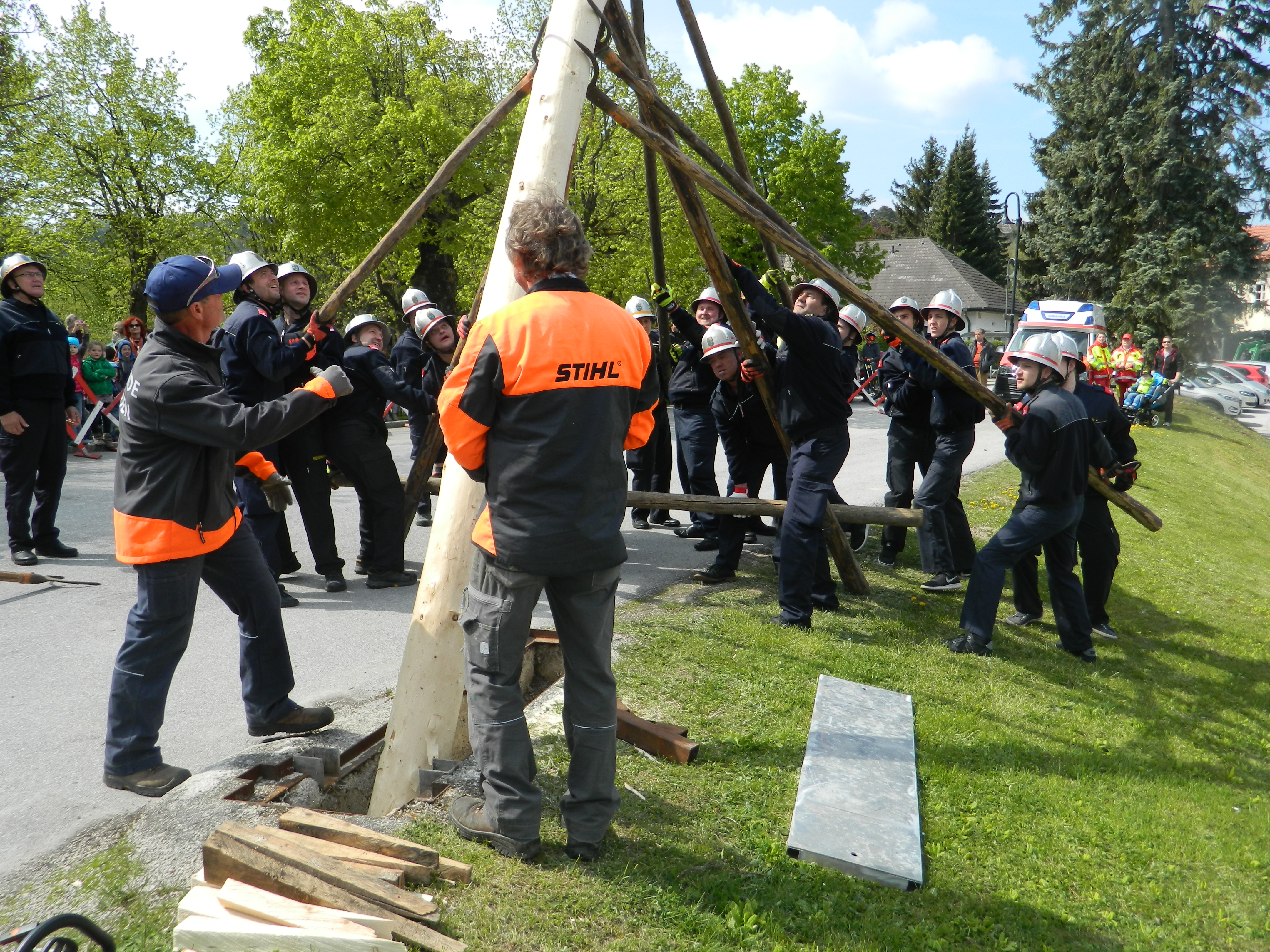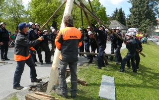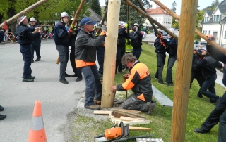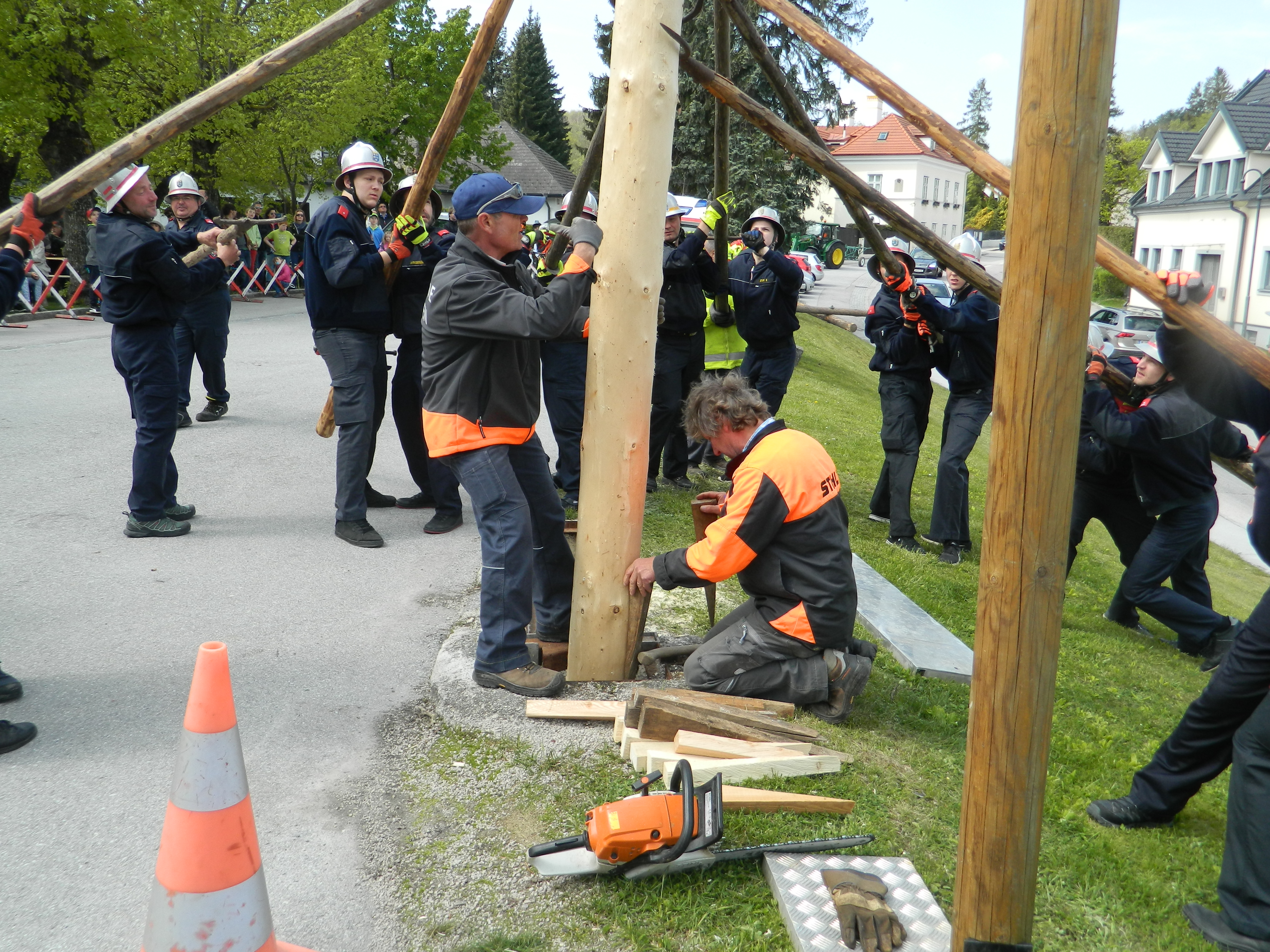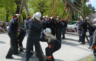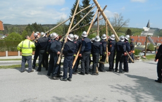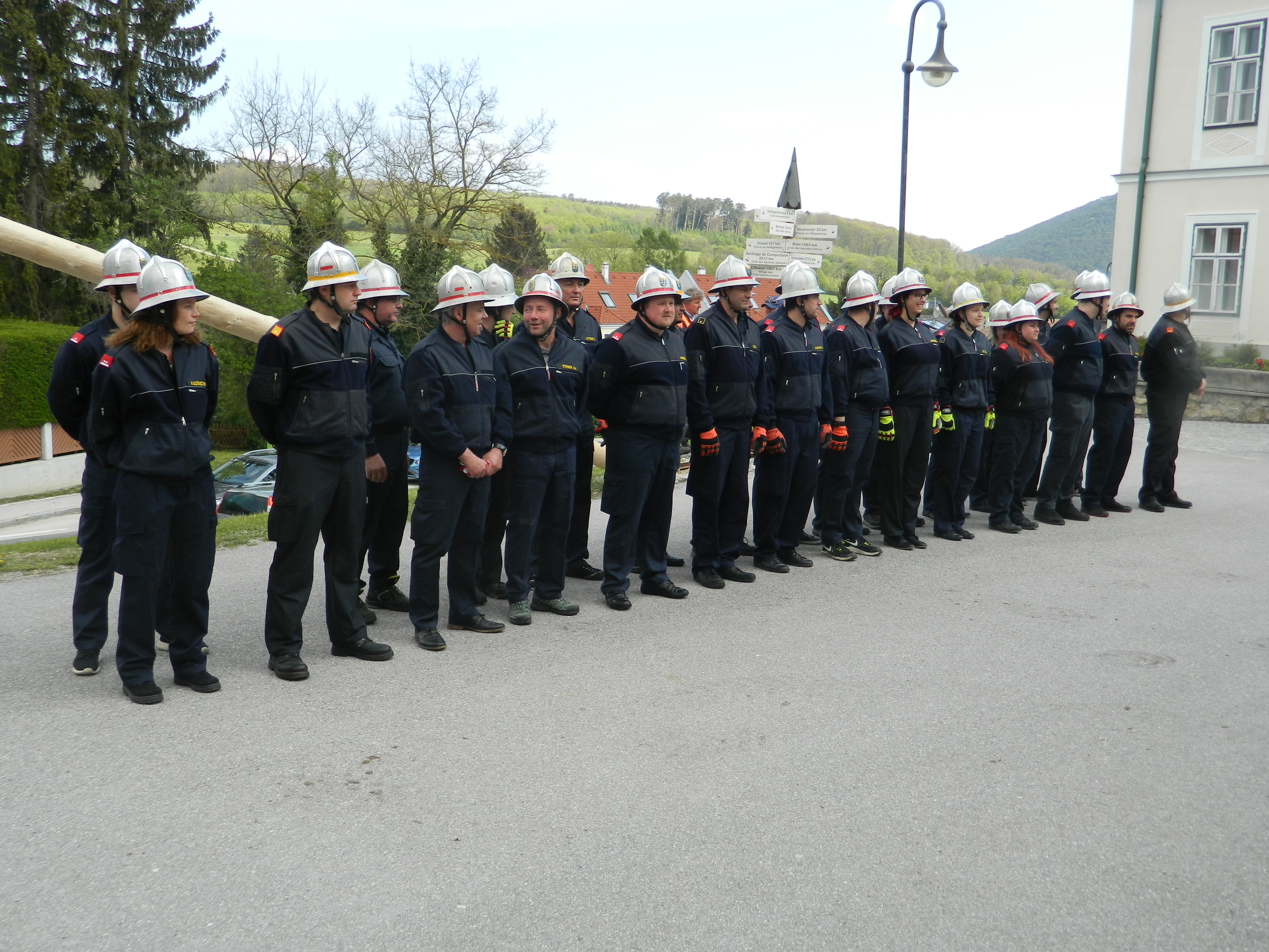 Anschließend wurde unter der Leitung von Kommandant OBI Erich Muck der Maibaum bei tollem Frühlingswetter von uns Mitgliedern händisch aufgestellt. Musikalisch unterstützt wurden wir von der Gaadner Blasmusik, welche sich in diesem Jahr auch um das leibliche Wohl der Gäste kümmerte. Danach wurde der Baum von Feuerwehrkurat Pater Kosmas gesegnet.