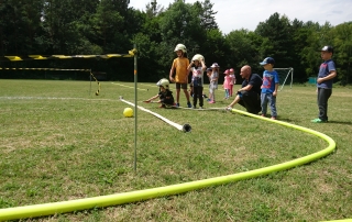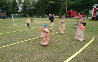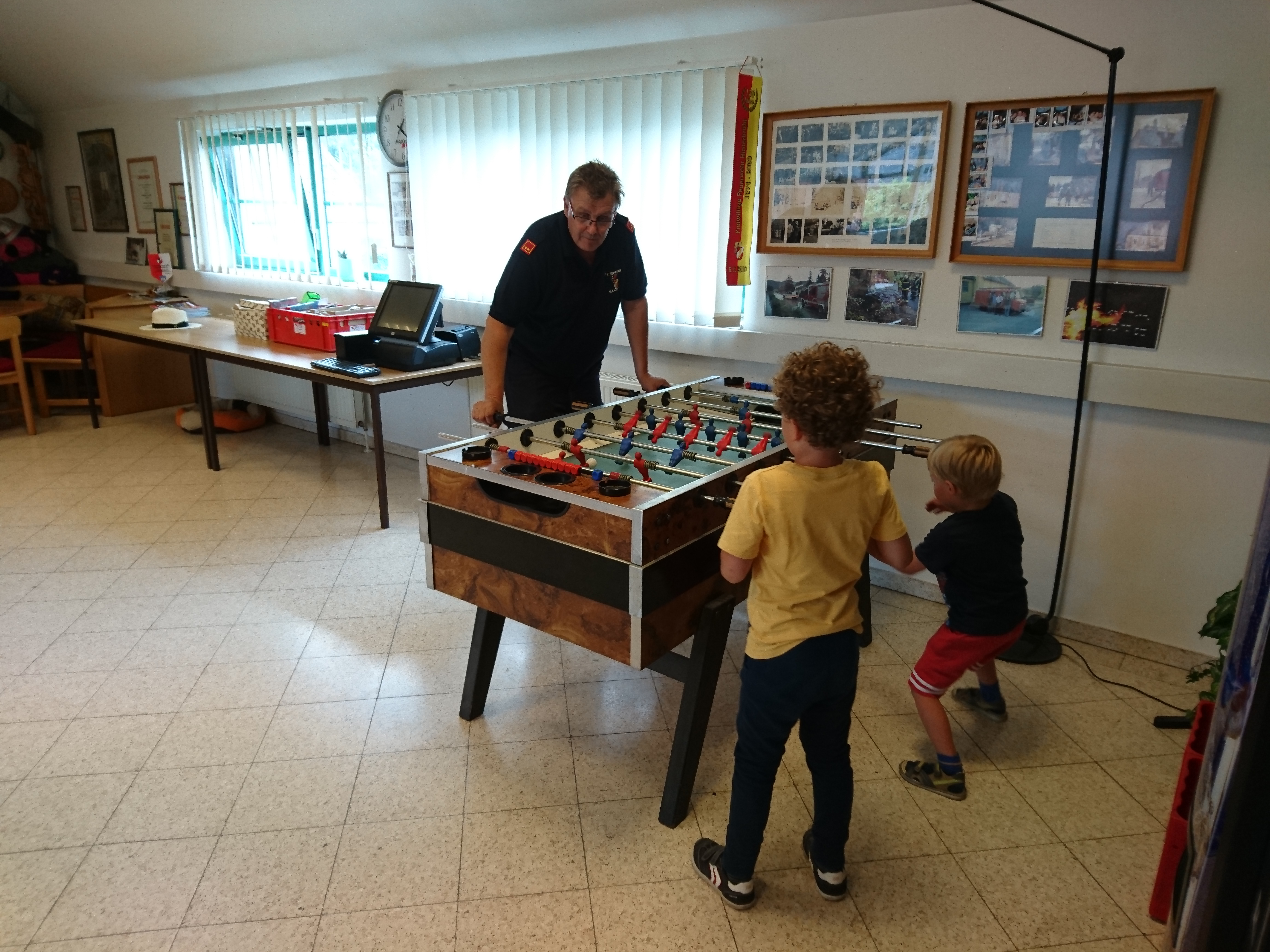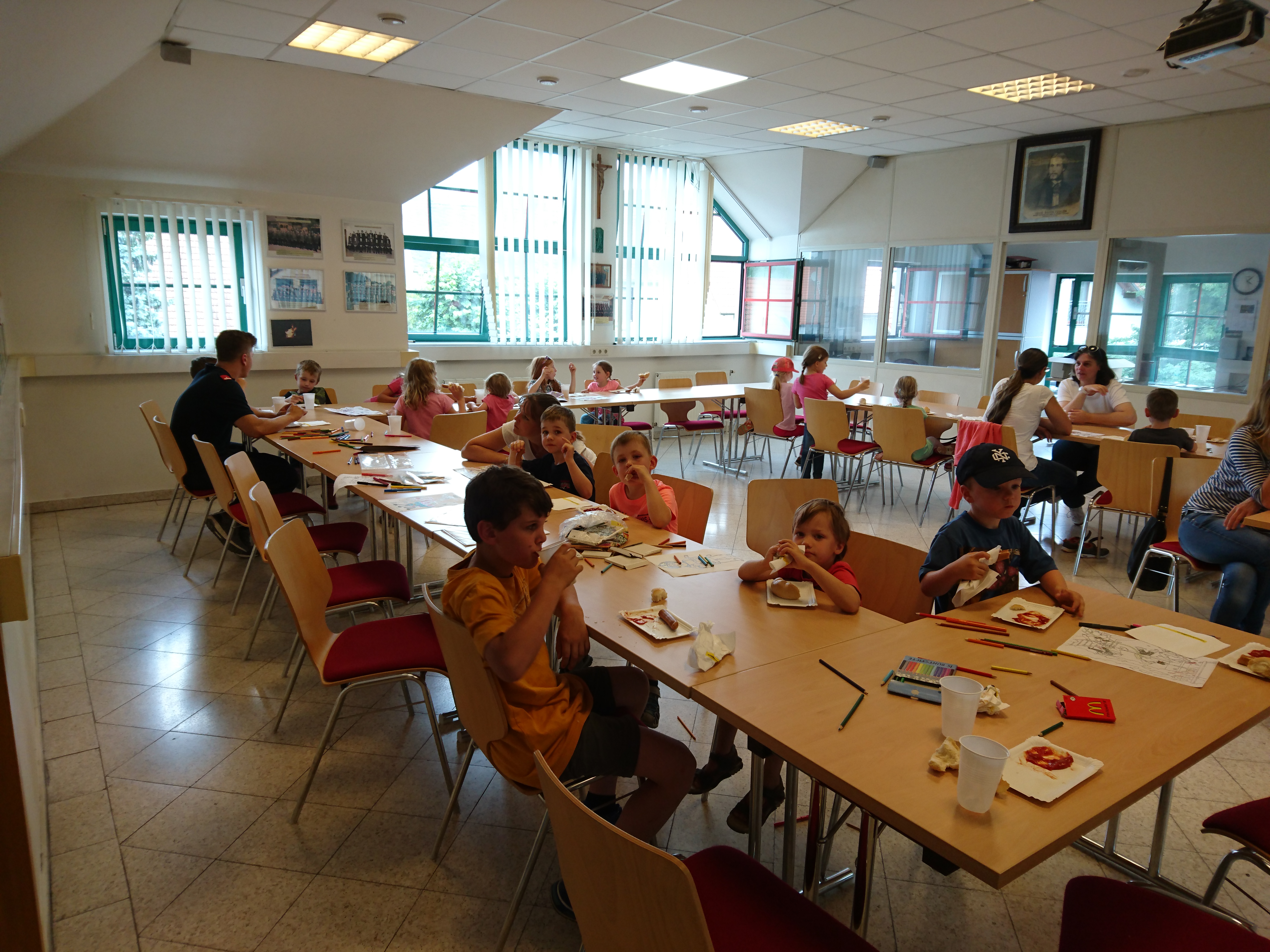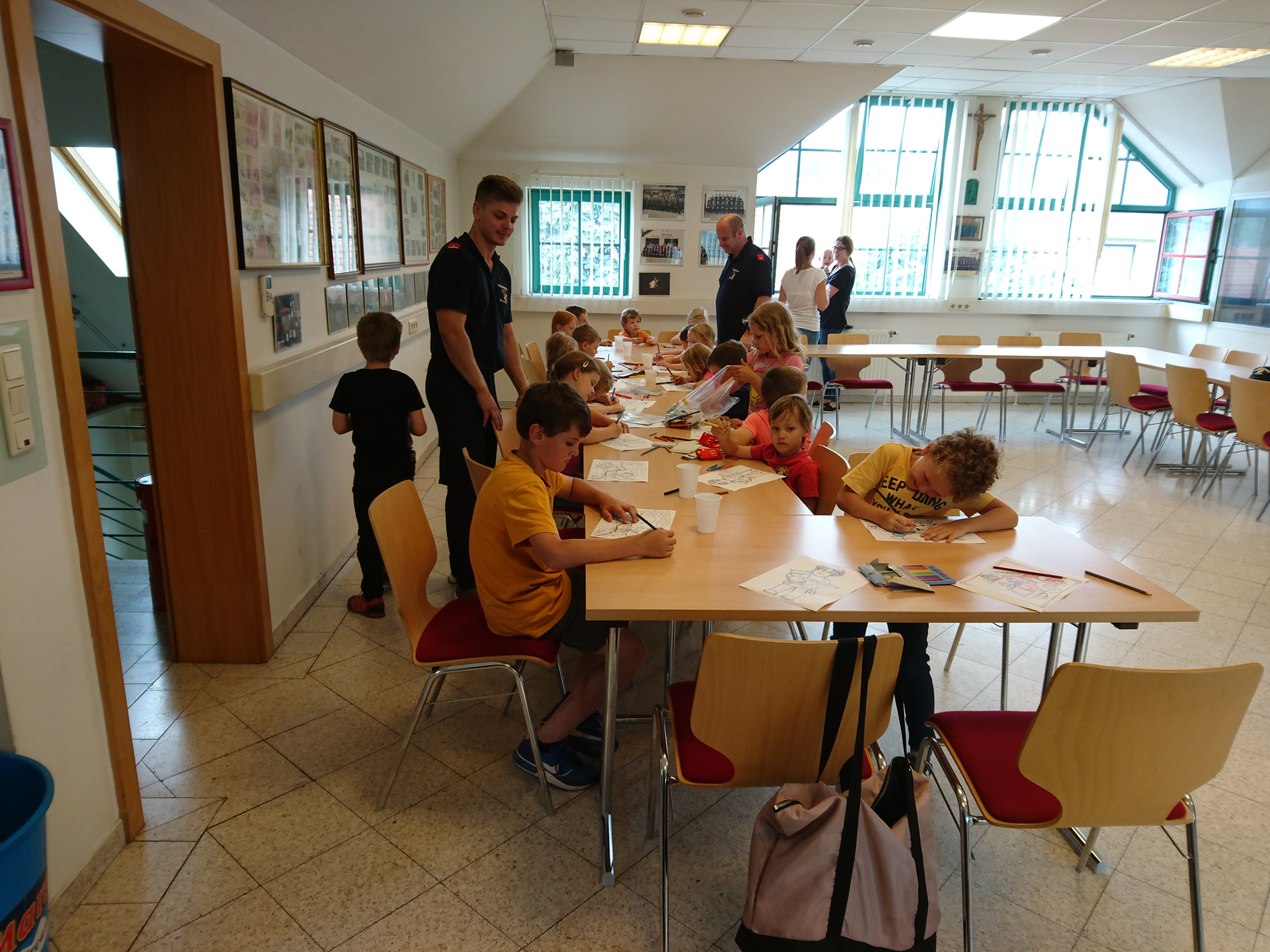 Knapp 20 Kinder waren unserer Einladung zum Kinderferienspiel gefolgt, um einen Nachmittag mit der Feuerwehr zu verbringen. Hierbei musste jeder in verschiedenen Stationen seine Schnelligkeit, Geschick sowie Ausdauer unter Beweis stellen. Am Sportplatz konnten die Kinder nicht nur das Feuerwehrauto bestaunen und das Inventar ausprobieren, sondern auch Zielspritzen und Sackhüpfen. Nachdem es nach kurzer Zeit zu regnen begann, wurde der Veranstaltungsort kurzerhand ins Feuerwehrhaus verlegt. Dort ging es mit Malen & Zeichnen, Tischfußball spielen und Würstel essen weiter. Am Ende wurden noch Erinnerungsurkunden, ein Dienstausweis für den „geprüften Jungfeuerwehrmann“ sowie eine kleine Überraschung überreicht. Sechs Mitglieder der Feuerwehr Gaaden waren fünf Stunden im Einsatz.