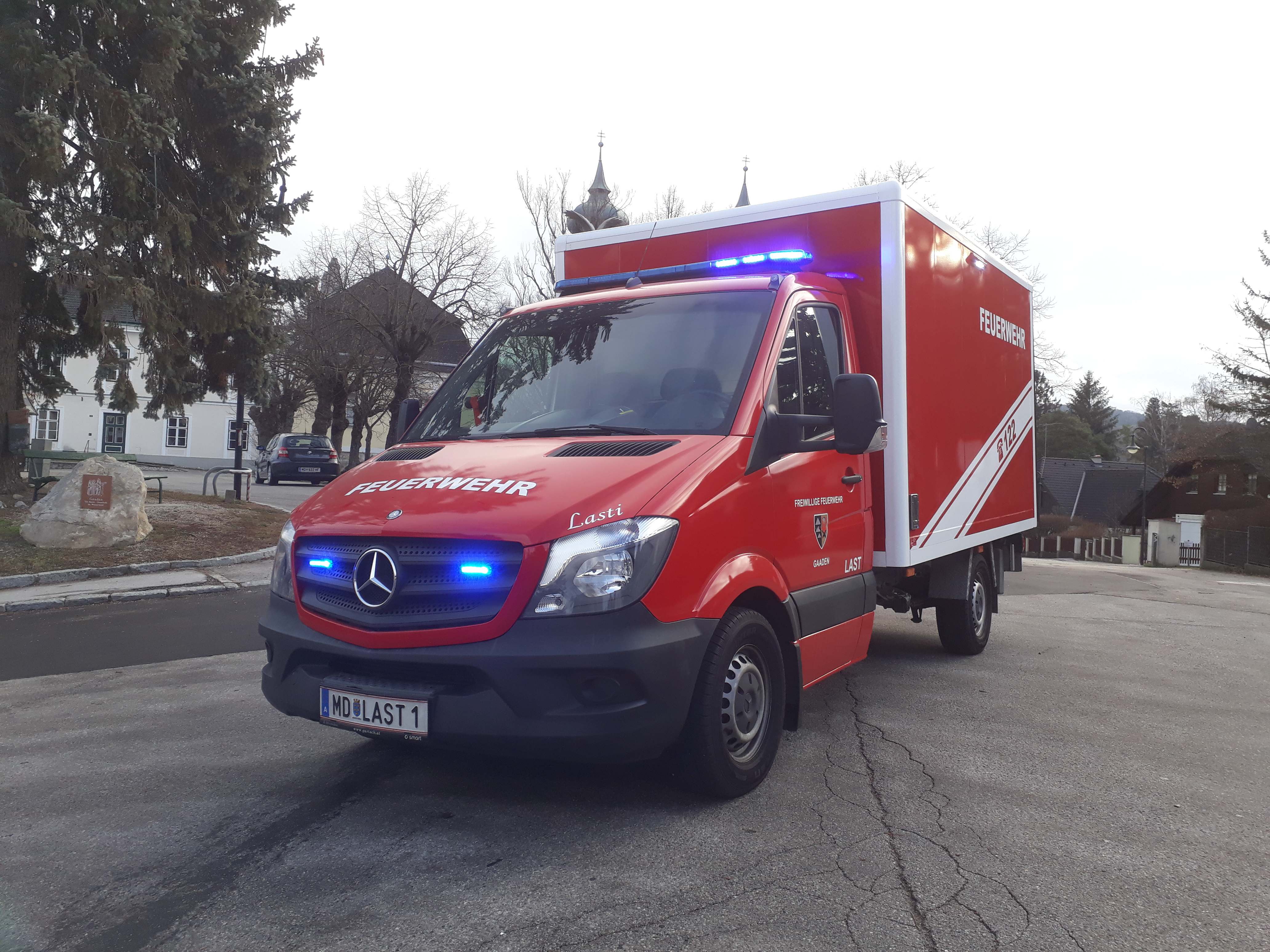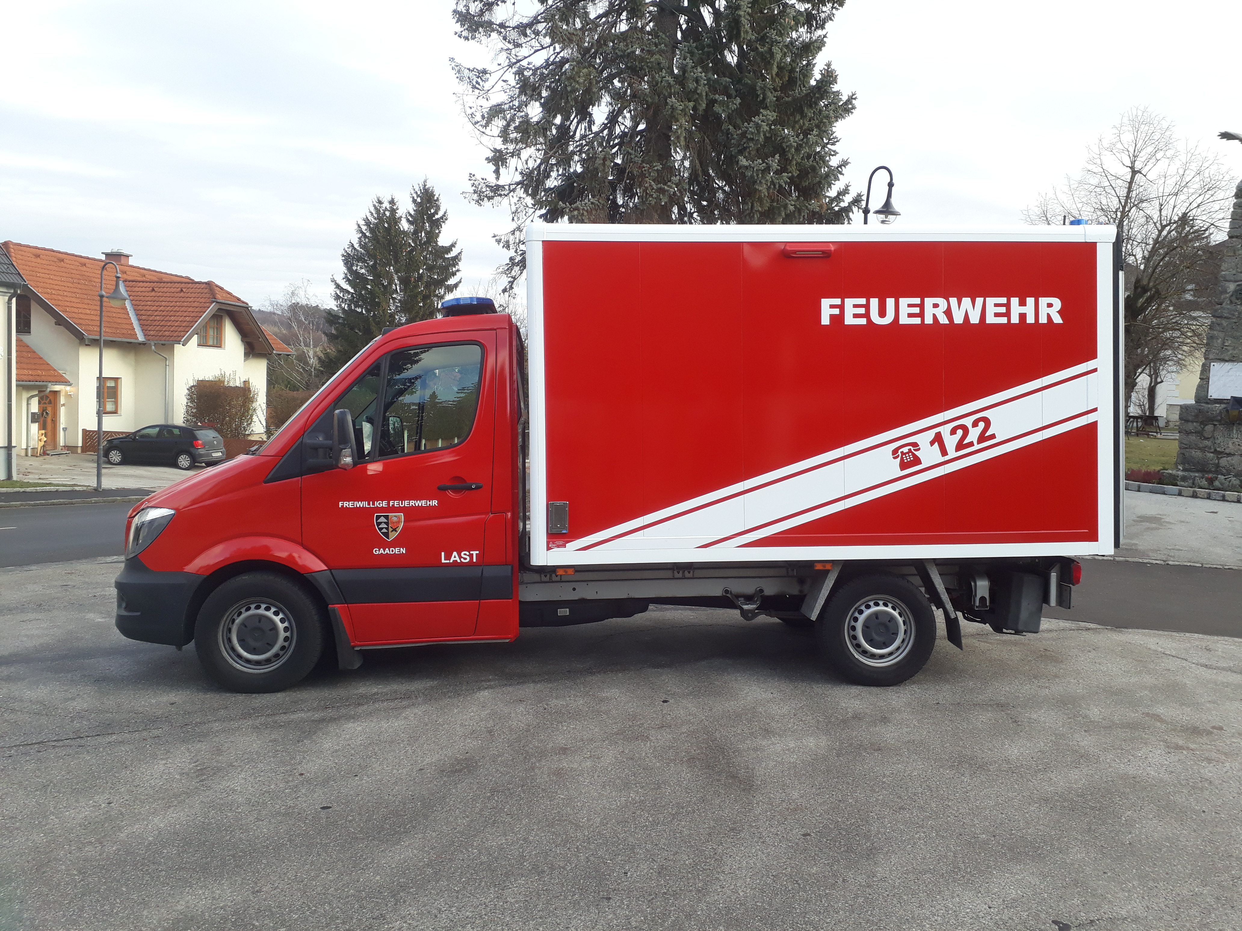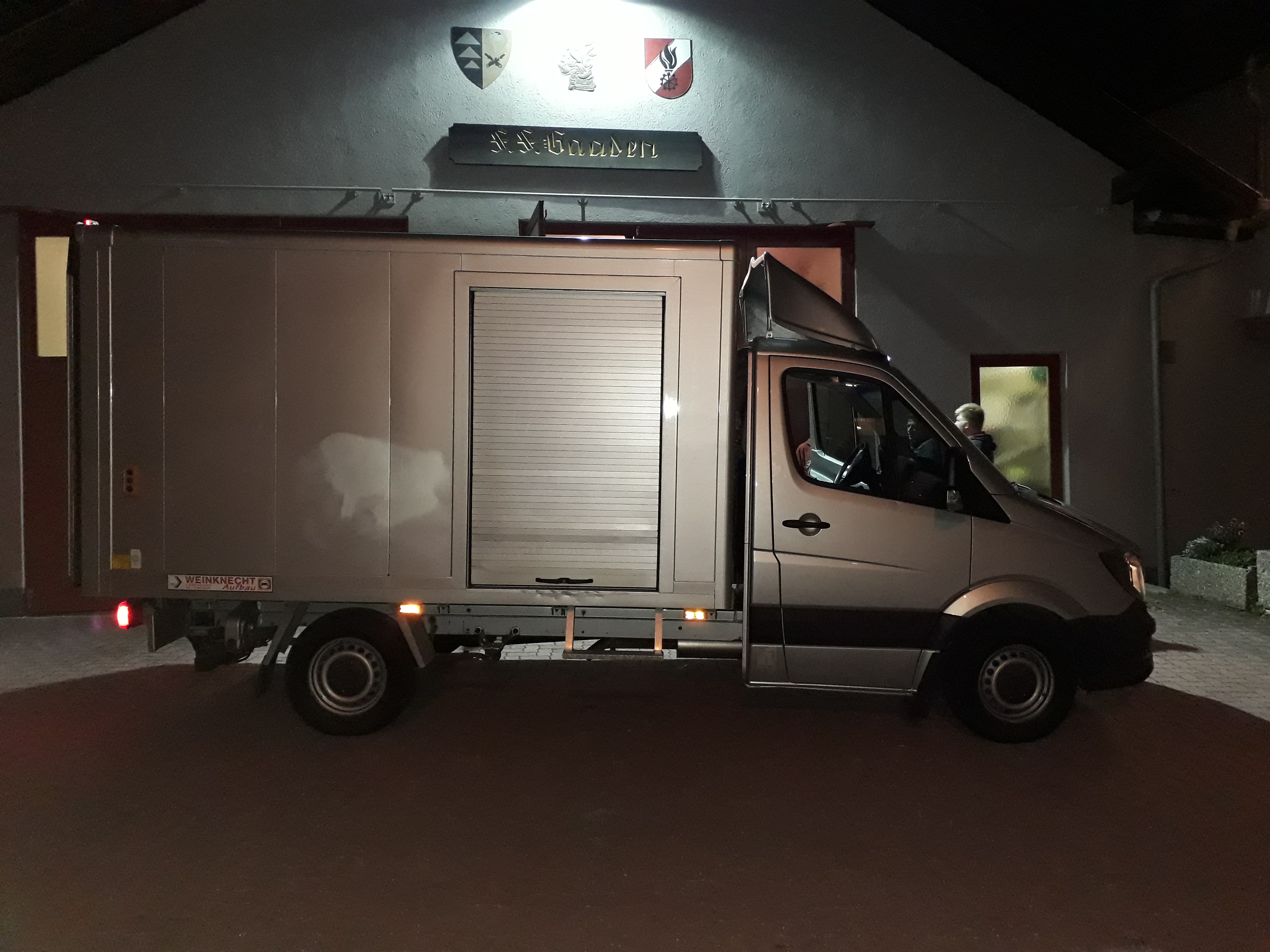 Wir machten uns auf die Suche nach einer Alternative und wurden schließlich im Oktober fündig. Ein gebrauchter Mercedes-Transporter mit Kofferaufbau und Ladebordwand stelle die perfekte Lösung dar. Ein Fahrzeug, das neben seinem jungen Alter all unsere Vorstellungen erfüllte, optisch und technisch keinerlei Mängel aufwies und im Rahmen der finanziellen Eigenmittel der Freiwilligen Feuerwehr Gaaden lag.