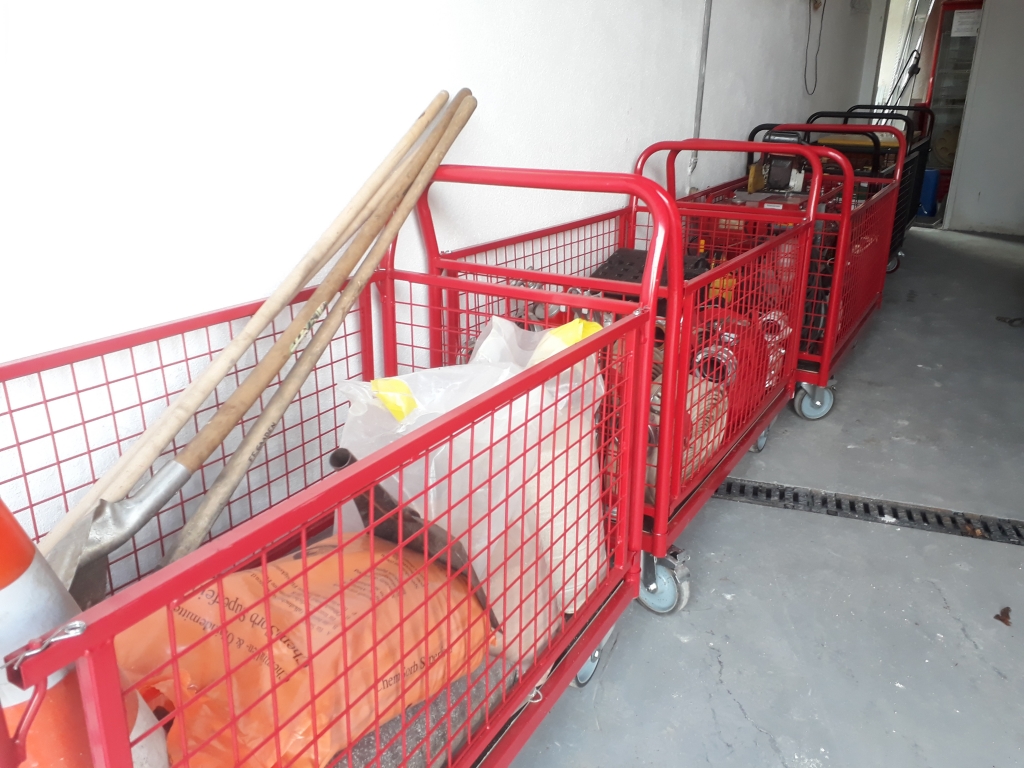 Die glückliche Chance der preisgünstigen Anschaffung sowie der unkomplizierte Umbau bilden perfekte Voraussetzungen für die geplante Einsatzzeit von mindestens 20 Jahren. Die Vorteile dieses Fahrzeuges liegen auf der Hand: Mittels unserer fünf mobilen Gitterkörbe, die mit einsatzspezifisch abgestimmten Gerätschaften bestückt und innerhalb weniger Minuten verladen sind, haben wir die Möglichkeit verschiedene Szenarien schnell und ohne dem zwingenden Verbleib eines Fahrzeuges am Einsatzort zu bewältigen.