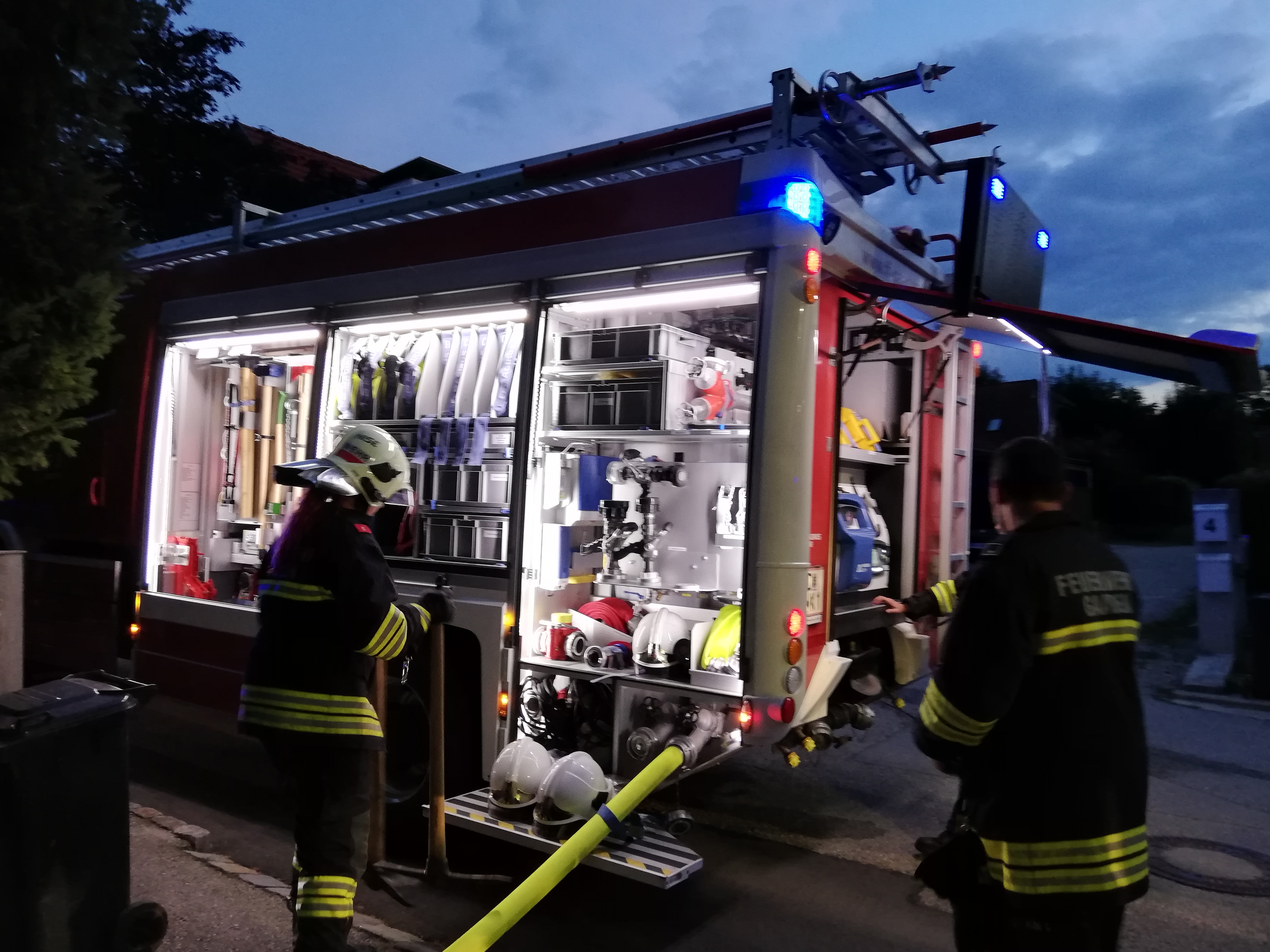 Nach einem arbeitsintensiven Wochenende mit unserer jährlichen Ortssammlung wurden wir am Sonntagabend um 20:40 Uhr zu einem Wohnhausbrand in Gaaden alarmiert. Unverzüglich rückten 15 Feuerwehrmitglieder mit vier Fahrzeugen zum besagten Einsatzort aus. Im Zuge seiner Nachschau stellte Einsatzleiter OBI Erich Muck einen brennenden Holzstoß fest, wobei sich das Feuer bereits auf die Holzfassade des anliegenden Hauses bis zum Dachgiebel ausgebreitet hat. Durch die schnelle Vornahme eines C-Rohres konnte der Brand rasch unter Kontrolle gebracht werden und eine weitere Ausbreitung auf das Haus oder umliegende Bäume verhindert werden.