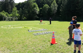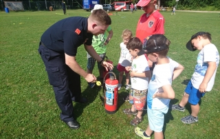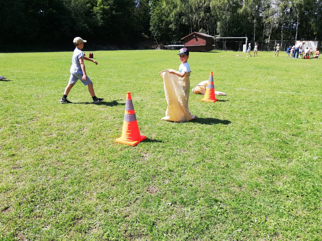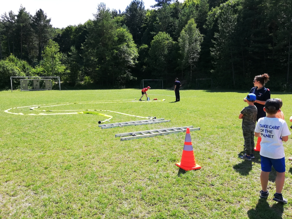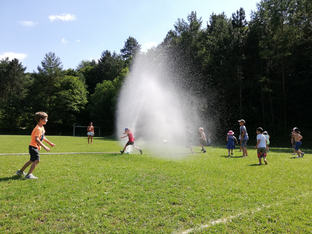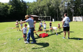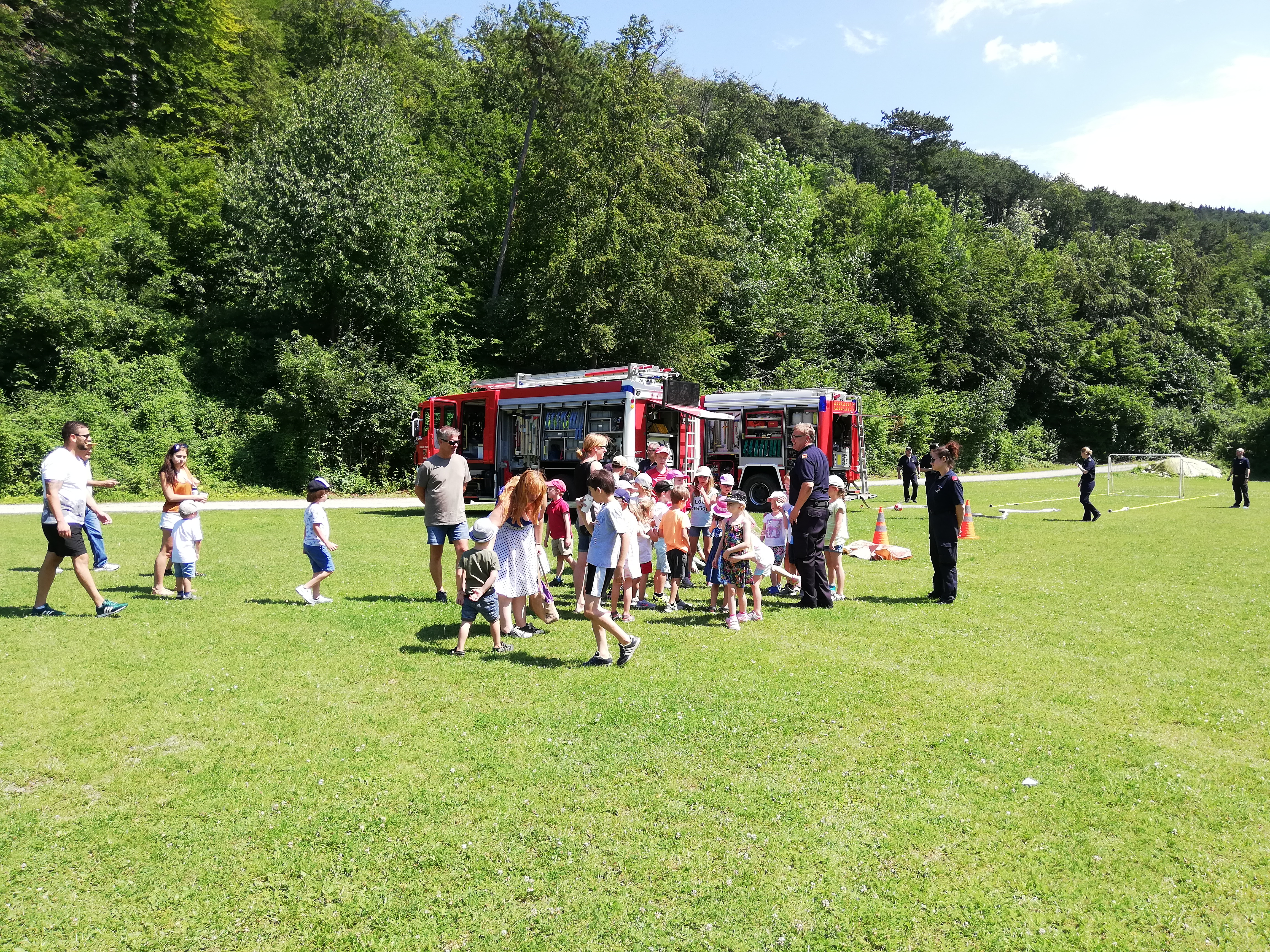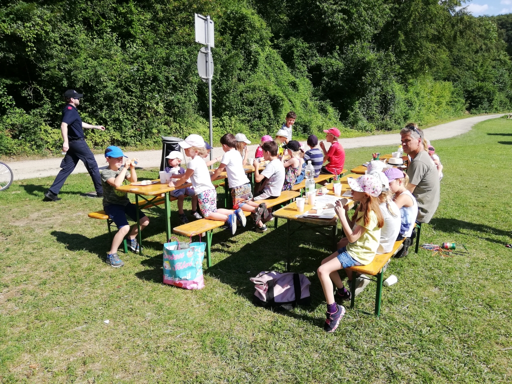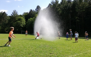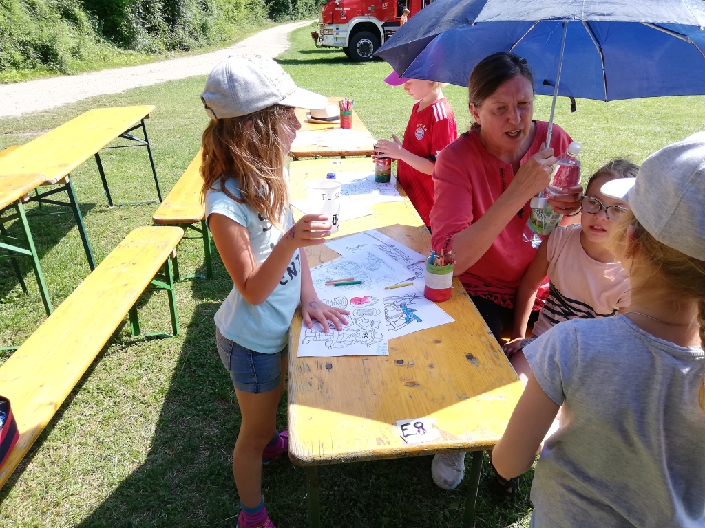 Knapp 40 Kinder waren unserer Einladung zum Kinderferienspiel am Sportplatz gefolgt, um einen Nachmittag mit der Feuerwehr zu verbringen. Bei verschiedenen Stationen konnte die Kinder Schnelligkeit sowie Geschick unter Beweis stellen. Hierbei mussten sie unter anderem einen Fußball mittels Strahlrohr in ein Tor „hineinlöschen“ oder einen Hindernisparcour bewältigen. Ebenso waren die Möglichkeiten für Sackhüpfen, Stelzengehen oder Malen und Zeichnen geboten. Das Highlight war aber sichtlich die Fahrt mit den großen Feuerwehrautos, die alle Kinderaugen strahlen ließen. Im Anschluss gab es noch eine kleine Unterrichtseinheit über das Verhalten im Brandfall und den richtigen Umgang mit Handfeuerlöschern, bevor nach einer Stärkung mit Würstelessen und der Übergabe einer Erinnerungsurkunde ein schöner und lustiger Nachmittag zu Ende ging.