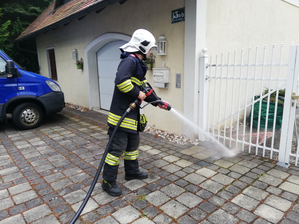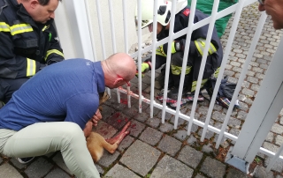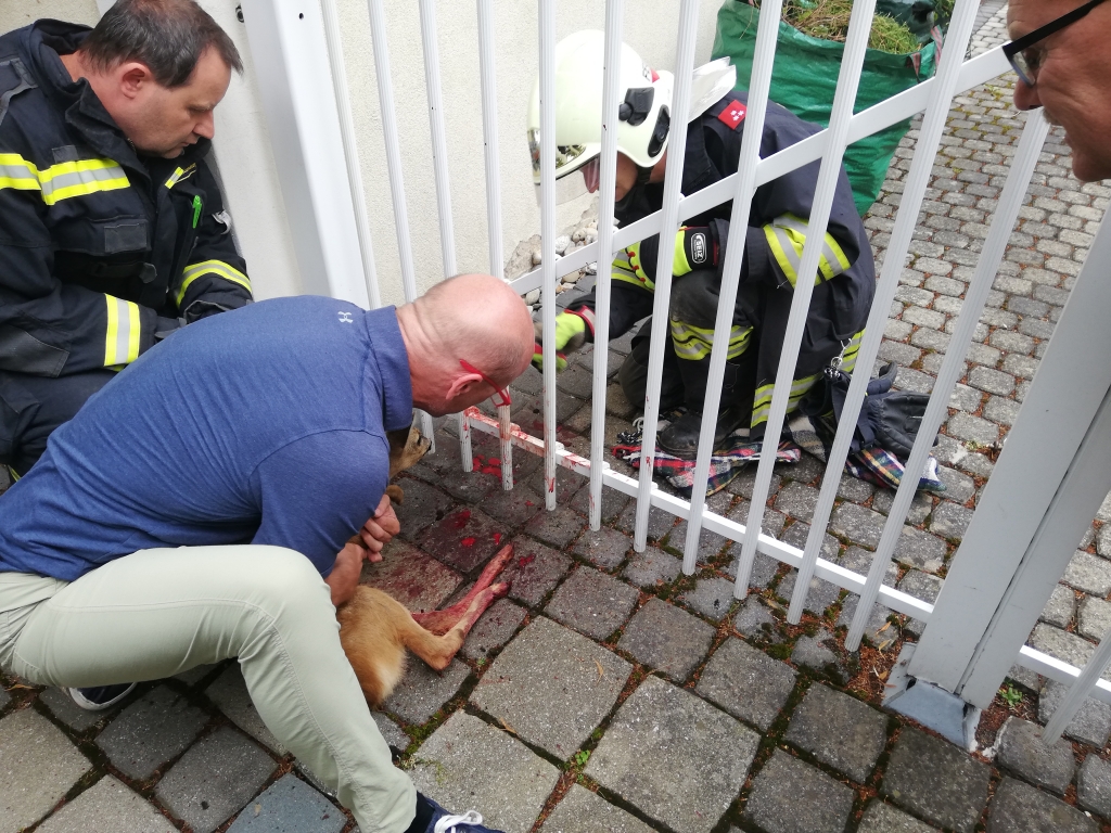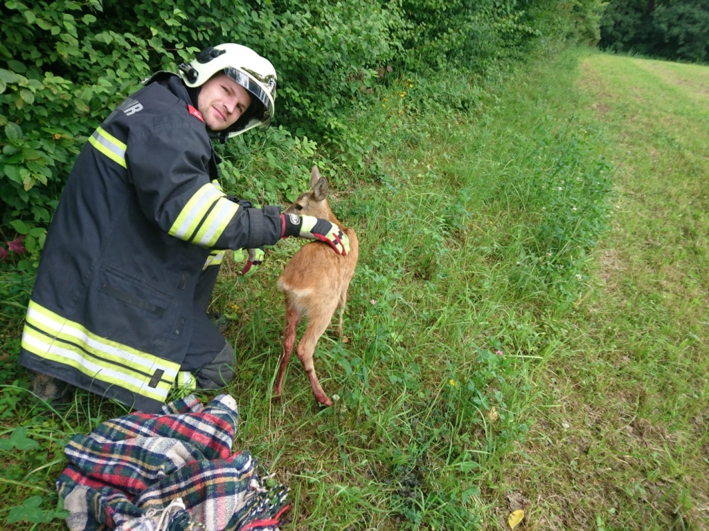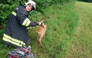 Um 17:05 Uhr erhielten wir die Alarmierung zu einer Tierrettung in der Sittendorferstraße. Ein besorgter Anrainer meldete der Feuerwehr, dass sich ein kleines Reh in einem Metallgartenzaun verfangen hat und feststeckt. Bei unserer Ankunft mussten wir leider feststellen, dass sich das Reh – wahrscheinlich durch panische Befreiungsversuche – eine blutende Wunde zugezogen hat. Nachdem wir den Kopf des Rehs zur Beruhigung zugedeckt hatten, entschieden wir uns einen befreundeten Tierarzt anzurufen, welcher einige Minuten danach am Einsatzort eintraf. Nach der gemeinsamen Befreiung und Begutachtung des Tieres, entschied der Arzt, dass das Reh aufgrund des leichten Verletzungsgrades bedenkenlos freigelassen werden kann. Dazu wickelten wir es in eine Decke ein und brachten es außerhalb des Ortes, wo es sich noch kurz streicheln ließ und anschließend in den Wald davonlief. Anschließend reinigten wir noch den Einsatzort mittels Hochdruckstrahlrohr.