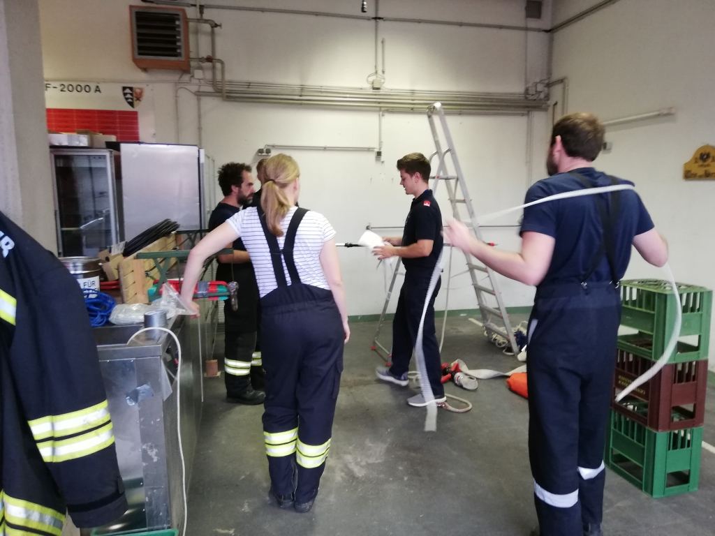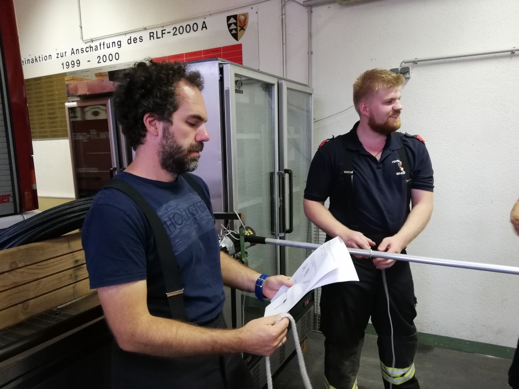 Im Zuge unserer heutigen Monatsübung beschäftigten wir uns mit dem richtigen Arbeiten mit tragbaren Leitern, sowie der Anwendung von Leinen und Knoten im Feuerwehrdienst. Die Gaadner Feuerwehr verfügt über zwei Schiebeleitern sowie eine Steckleiter, die im Einsatzfall eine Arbeits- und Rettungshöhe bis zu knapp 12 Metern erlauben. Bei einem Gewicht von circa 70 Kilogramm bei der größten Leiter müssen die richtigen Handgriffe sitzen – dazu schulten uns die beiden Übungsausarbeiter OBI Erich Muck und LM Bernhard Stark im Stationsbetrieb mit zwei Gruppen theoretisch als auch praktisch über die richtigen Arbeitsweisen. Auch die Knoten, welche im Feuerwehrdienst benötigt werden, wurden von jedem Teilnehmer geübt und aufgefrischt. Nach knapp eineinhalb Stunden wurde die Übung beendet.