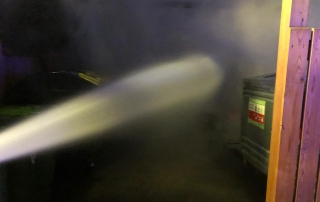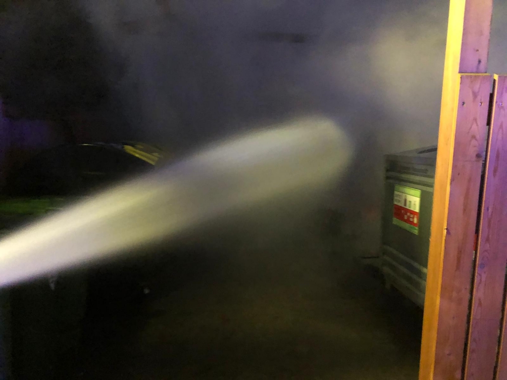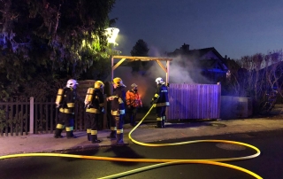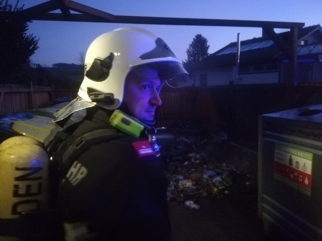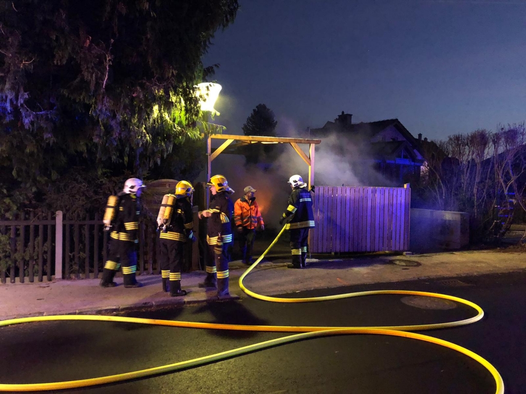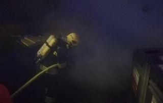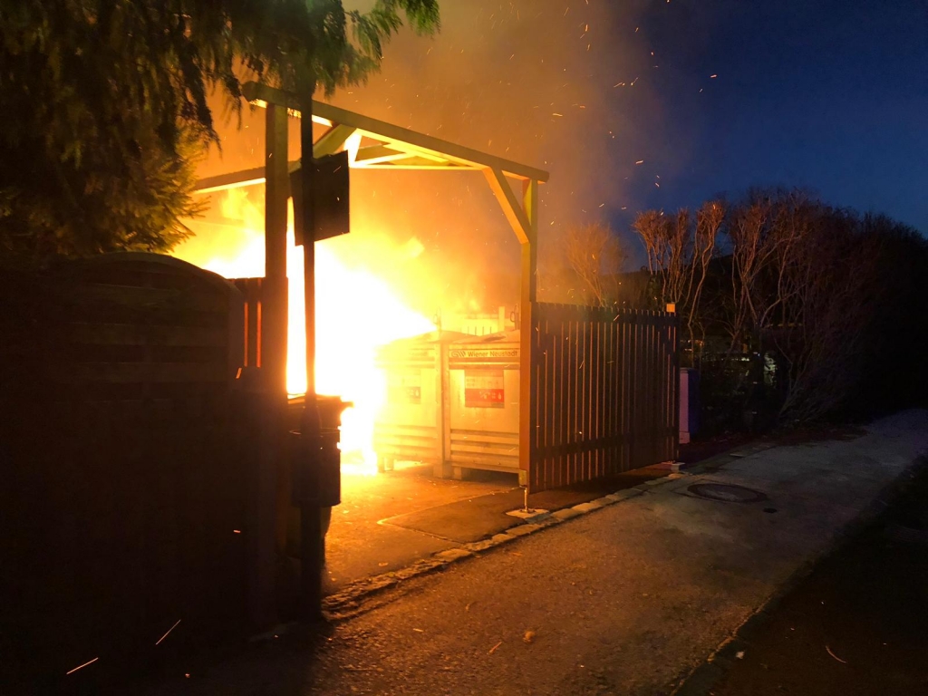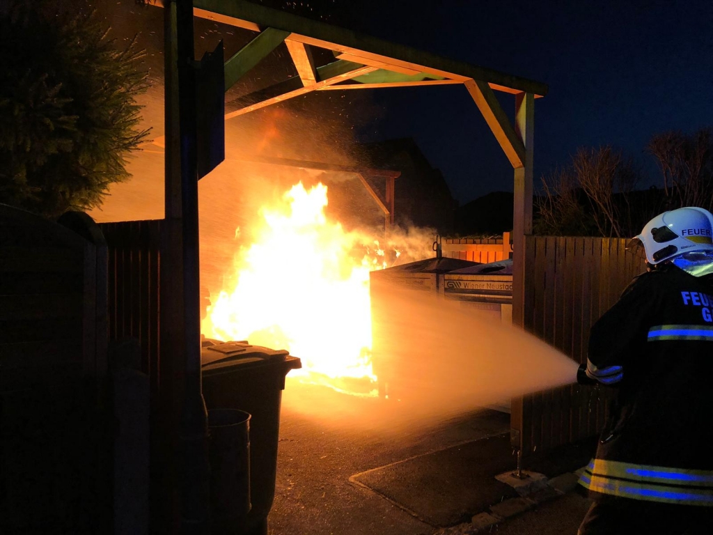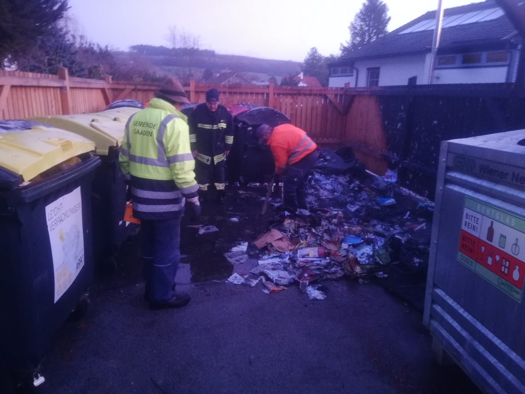 Bei unserem Eintreffen standen bereits zwei Altpapier- sowie ein Metallcontainer der Müllinsel in Vollbrand. In Zuge eines sofortigen Löschangriffes mit unserer C-Schnellangriffseinrichtung konnte der Brand unter schwerem Atemschutz in kurzer Zeit bekämpft werden. Die Gefahr der weiteren Ausbreitung – unter anderem auch durch starken Funkenflug – konnte somit ebenfalls rasch eingedämmt werden. Um ein späteres Entfachen zu verhindern wurde der Müll zerteilt und verbliebene Glutnester sorgfältig abgelöscht. Nach einer dreiviertel Stunde konnte „Brand aus“ gegeben werden.