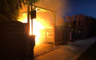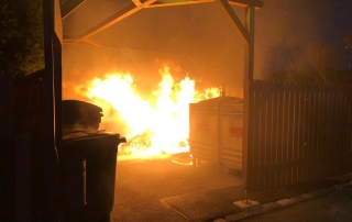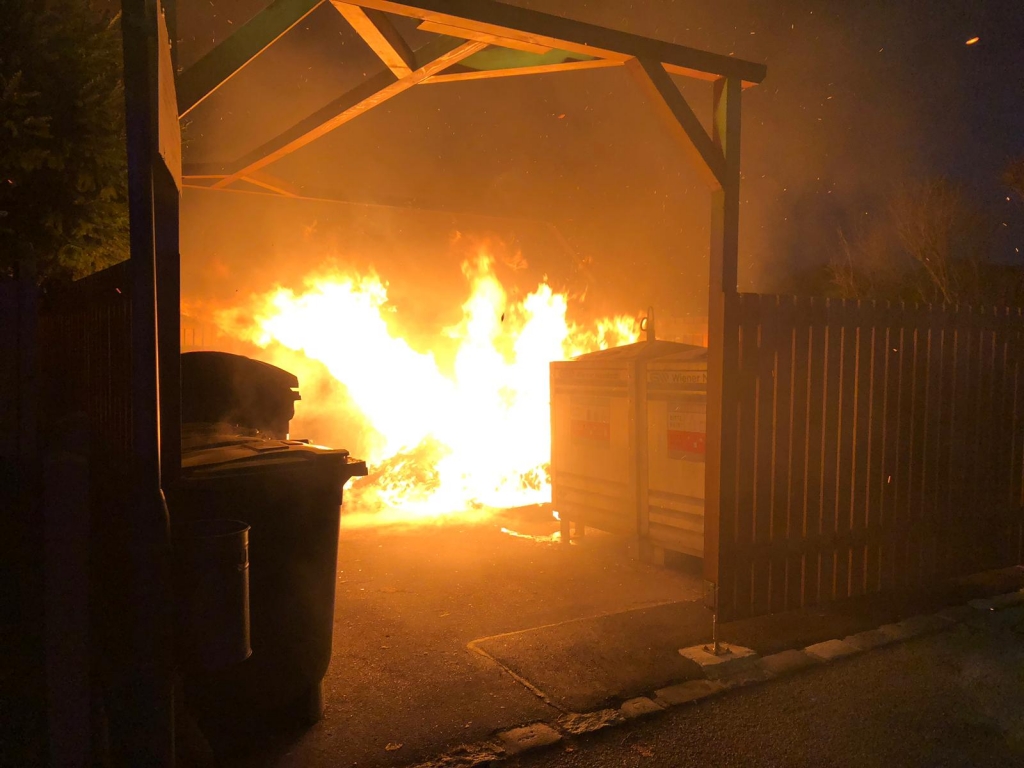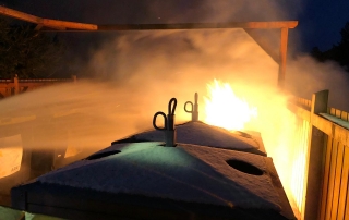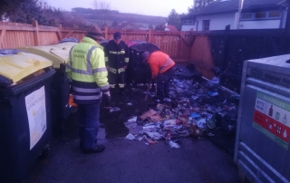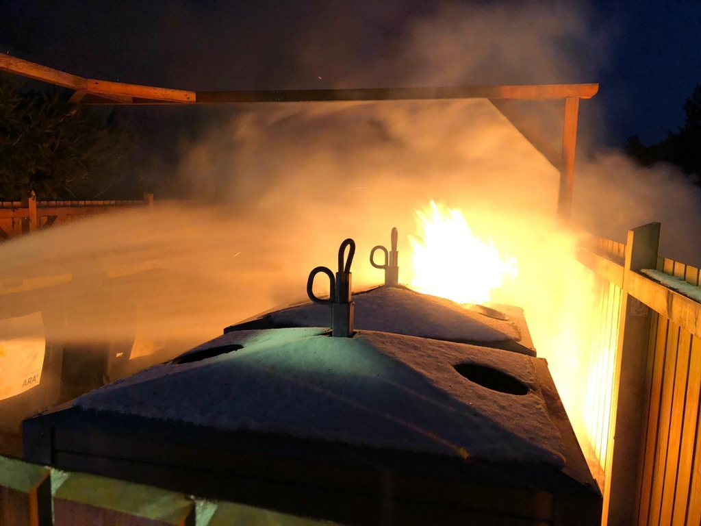 Bei dem Brand wurden drei Müllcontainer komplett zerstört, sowie durch Hitze und Feuer einige weitere Behälter sowie die Holzeinzäunung der Sammelstelle schwer in Mitleidenschaft gezogen. Durch unser rasches Eingreifen konnte jedoch die Ausbreitung auf weitere Behälter, Sträuche oder umliegende Grundstücke verhindert werden.