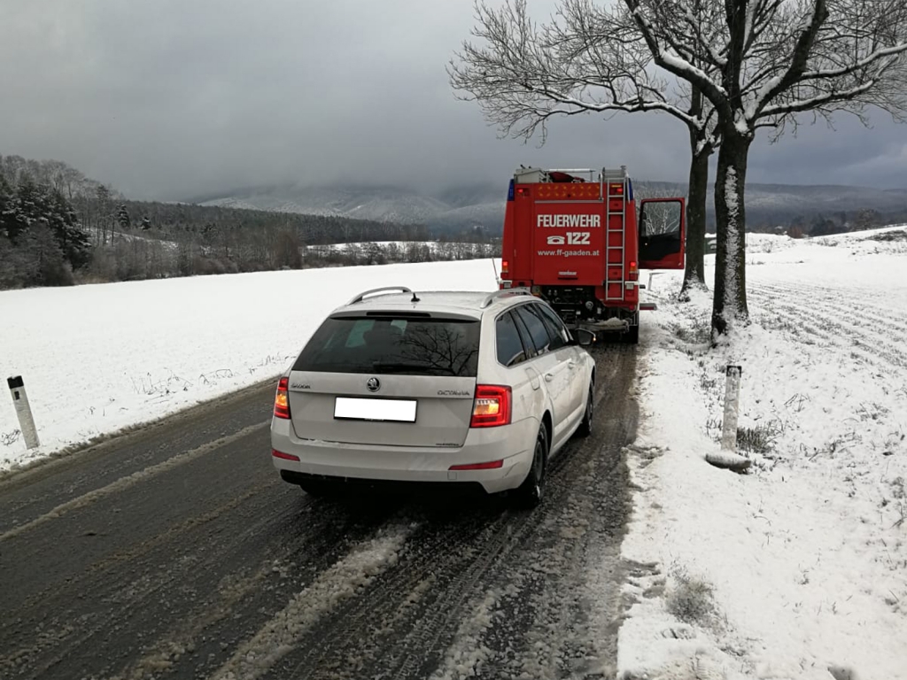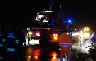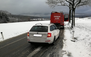 Nach den ersten stärkeren Schneefällen mussten wir am Mittwoch, den 12. Dezember zu zwei Fahrzeugbergungen ausrücken. Beide PKW waren auf schneeglatter Fahrbahn in den Straßengraben gerutscht und mussten von uns geborgen werden. Während das Unfallfahrzeug des ersten Einsatzes händisch aus dem Graben geschoben werden konnte, musste der PKW des zweiten Einsatzes mittels Kran aus der tiefen Böschung gehoben werden. Nach insgesamt circa drei Stunden konnten wir wieder einrücken.