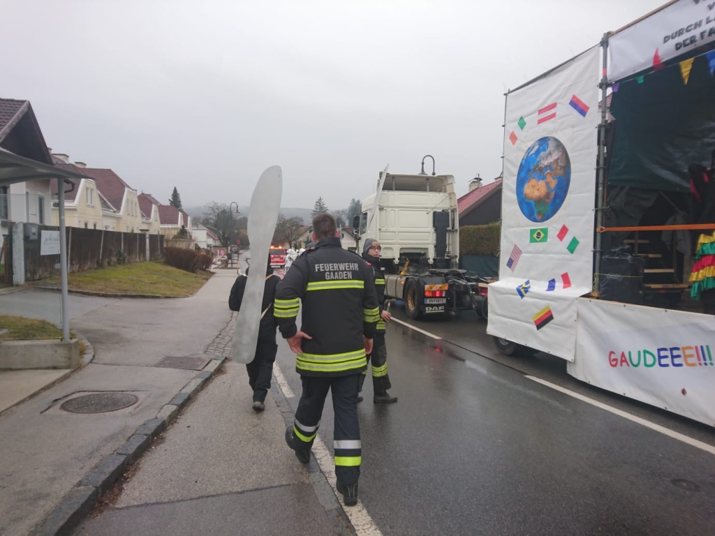Am 2. März fand der traditionelle Faschingsumzug in Gaaden statt. Gemeinsam mit der Polizei sicherten wir den Umzug ab und sperrten einige Straßenzufahrten, um einen störungsfreien Ablauf zu gewährleisten. Die Endstation war im Feuerwehrhaus, wo sich im Anschluss viele Faschingsgäste einfanden.