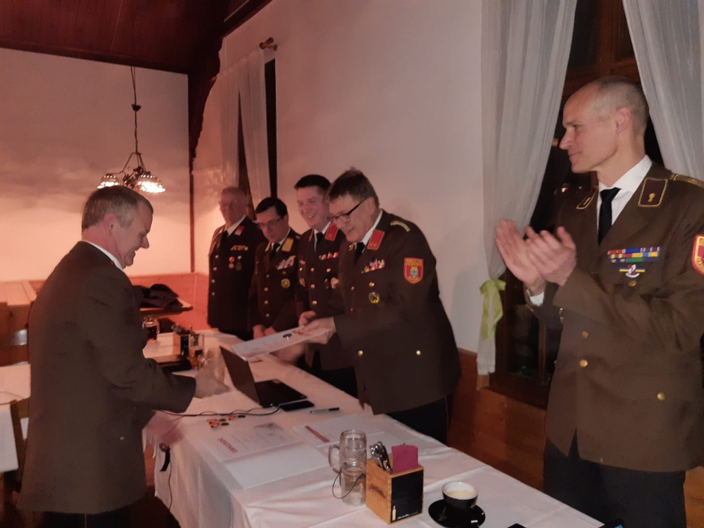 Anschließend folgte die Beförderung von FM Johannes Di Lena zum Sachbearbeiter Feuerwehrmedizinischer Dienst sowie FM Tobias Repototschnig zum Oberfeuerwehrmann. Die Kameraden LM Adolf Brenn und LM Christian Brenn wurden für 40 Jahre Feuerwehrmitgliedschaft und Kamerad EHLM Helmut Tromayer für 50 Jahre Feuerwehrmitgliedschaft ausgezeichnet – herzlichen Glückwunsch!