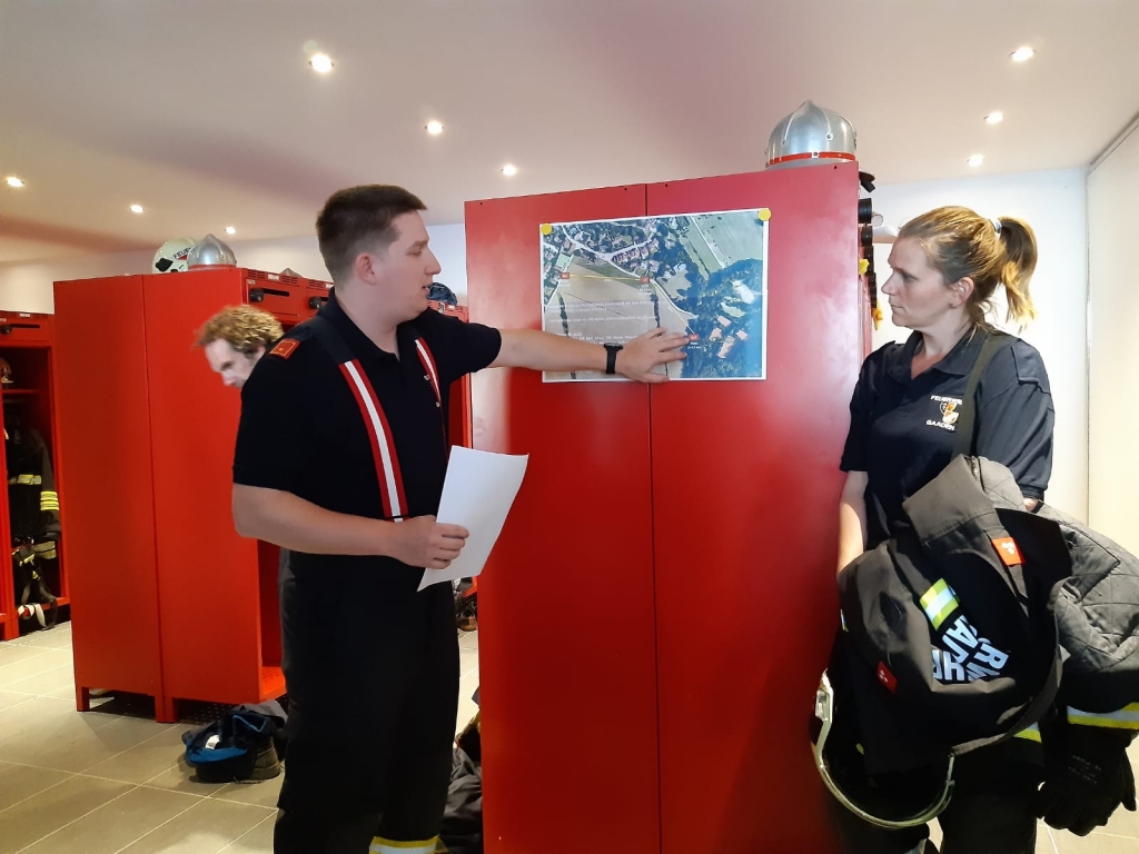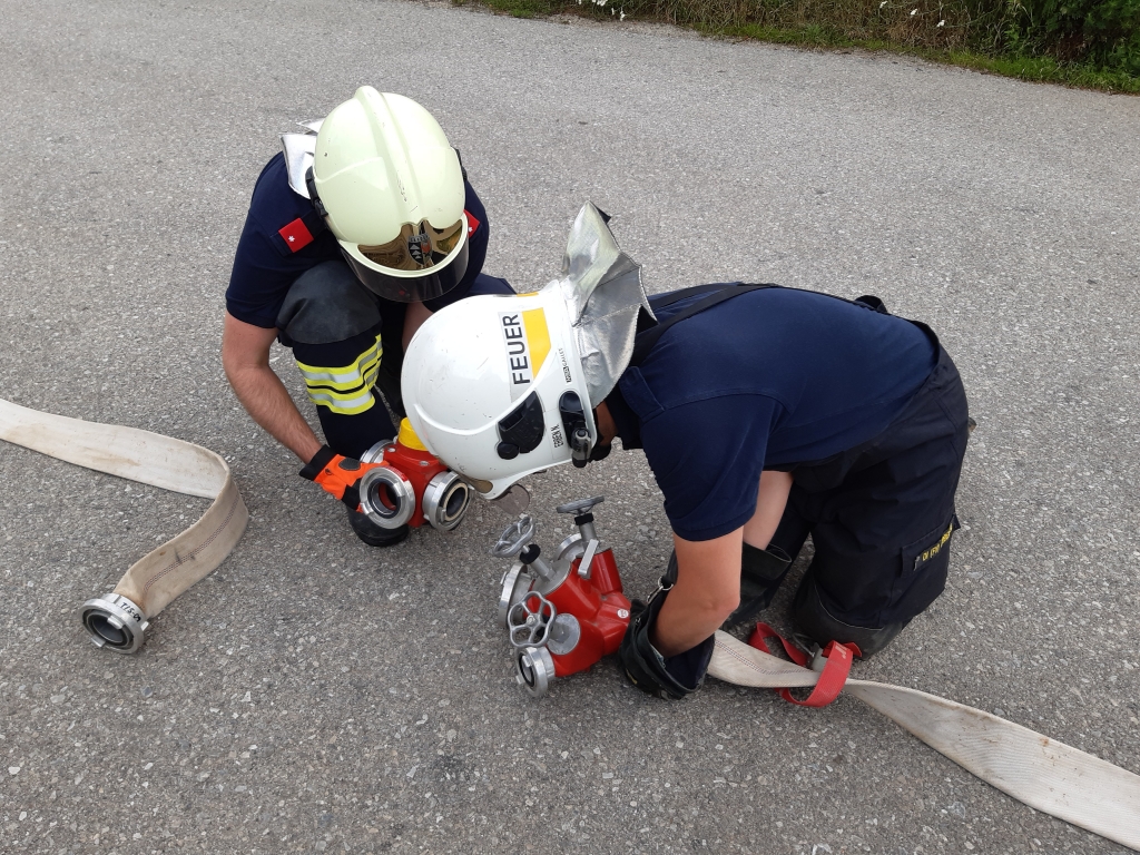 Vor Beginn des praktischen Teils wurden im Feuerwehrhaus einsatztaktische Grundsätze sowie die korrekte Berechnung der Druckverluste aufgrund Reibung, Armaturen, Leitungslänge sowie Höhenunterschied erklärt. Ebenso wurde darauf Wert gelegt, die errechneten Werte mit den tatsächlichen Werten im anschließenden Übungsbetrieb zu vergleichen.