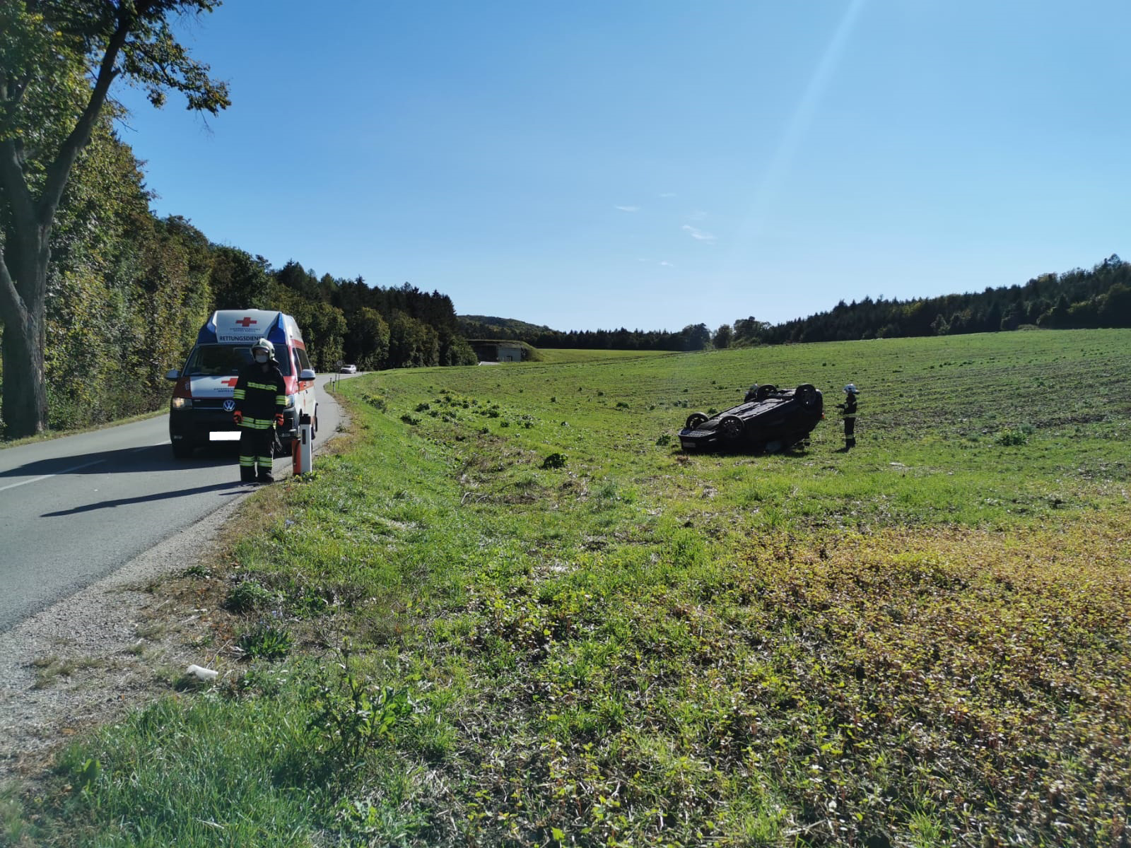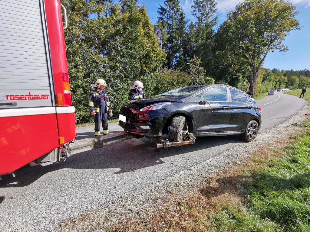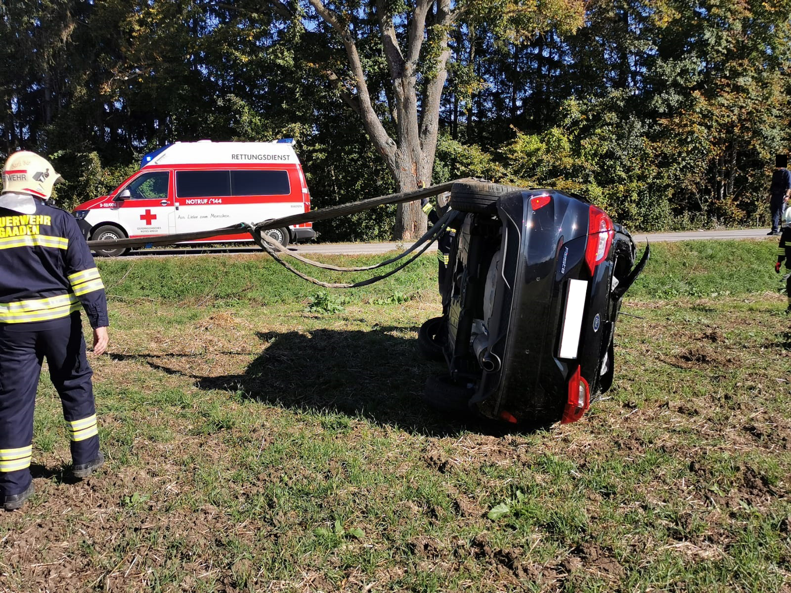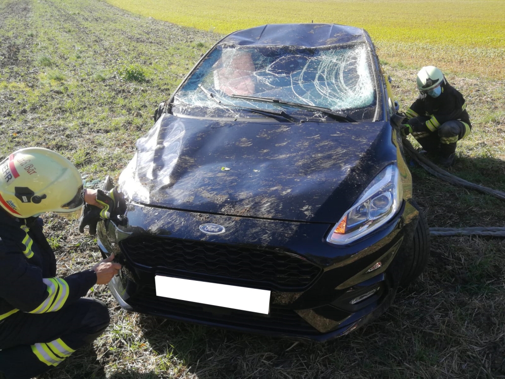 Am 6. Oktober 2020 wurden wir um 11:03 Uhr zu einem Verkehrsunfall auf die L4010 Richtung Einöde Pfaffstätten alarmiert. Eine PKW-Lenkerin verlor laut eigenen Angaben aufgrund eines querenden Tieres die Herrschaft über ihr Fahrzeug und geriet damit ins Schleudern. Das Fahrzeug überschlug sich und kam schlussendlich in einem Feld auf dem Dach zu liegen. Der ebenfalls alarmierte Rettungsdienst verbrachte die Lenkerin zur weiteren Behandlung in das Krankenhaus. Nach unserer Ankunft am Einsatzort wurde umgehend ein Brandschutz aufgebaut sowie die Unfallstelle abgesichert. Im Anschluss stellten wir den stark beschädigten PKW mittels Seilwinde auf die Räder, zogen ihn auf die Fahrbahn zurück und schleppten ihn auf den Parkplatz bei der Gaadner Ortseinfahrt. Sieben Feuerwehrmitglieder waren mit einem Fahrzeug eine Stunde lang im Einsatz.
