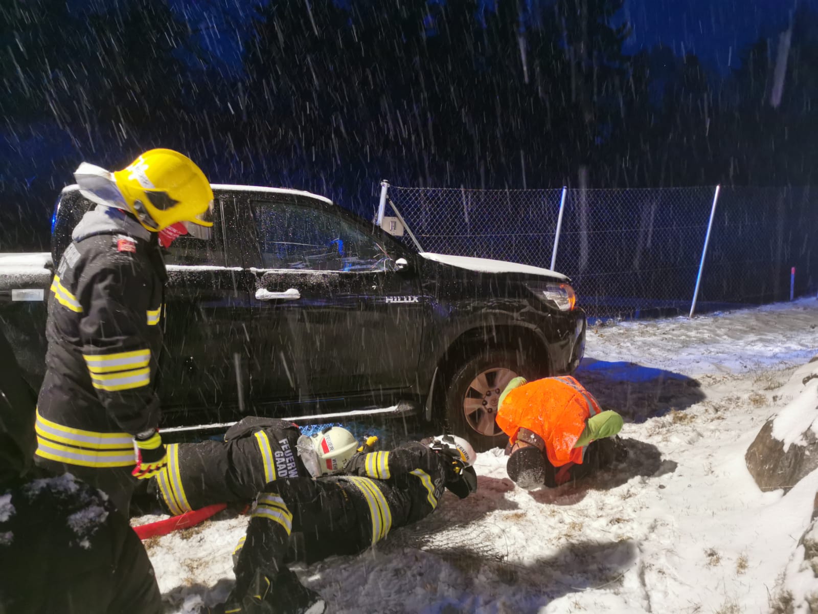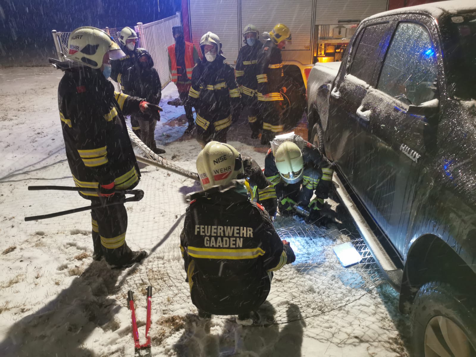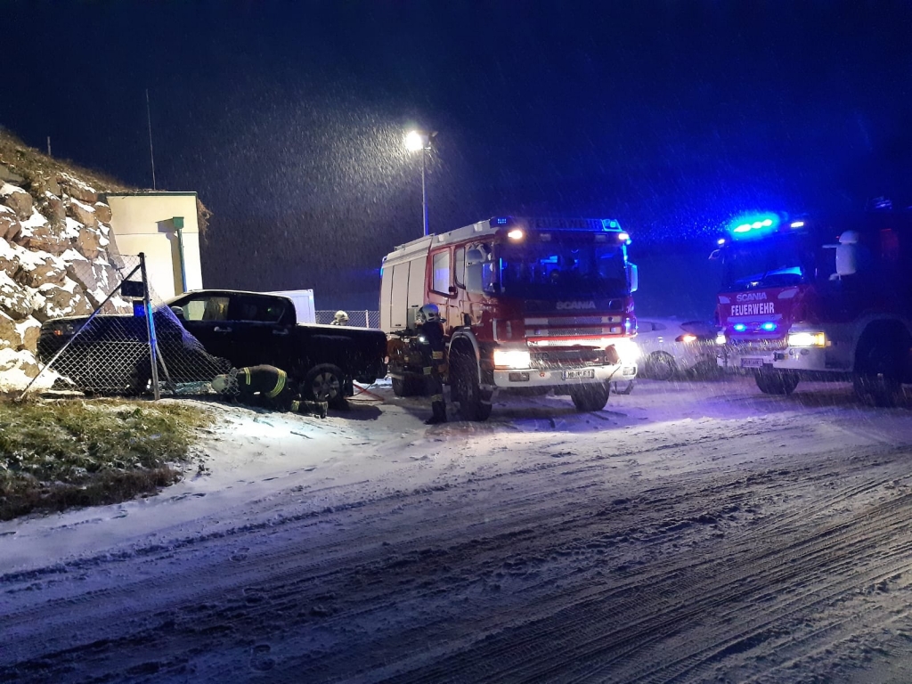 Am 3. Dezember 2020 wurden wir nach nächtlichem Schneefall um 06:28 Uhr zu einem Verkehrsunfall auf der L4010 Höhe S-Kurve alarmiert. Ein PKW-Lenker verlor auf schneeglatter Fahrbahn die Kontrolle über sein Fahrzeug und rutschte über die Kurve hinaus in einen Maschendrahtzaun.