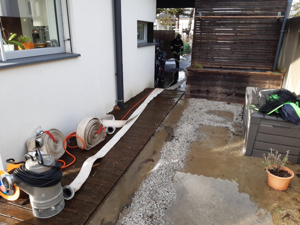 Unter Einsatz von drei Pumpen konnte dies verhindert werden – außerdem wurde ein Drainagerohr, welches das Regenwasser der gesamten Siedlung ableitet, kontrolliert und von Verschmutzungen gereinigt. Durch die Vornahme dieser Maßnahmen konnte das Nachrinnen des Regenwassers und damit verbundene größere Schäden verhindert werden.