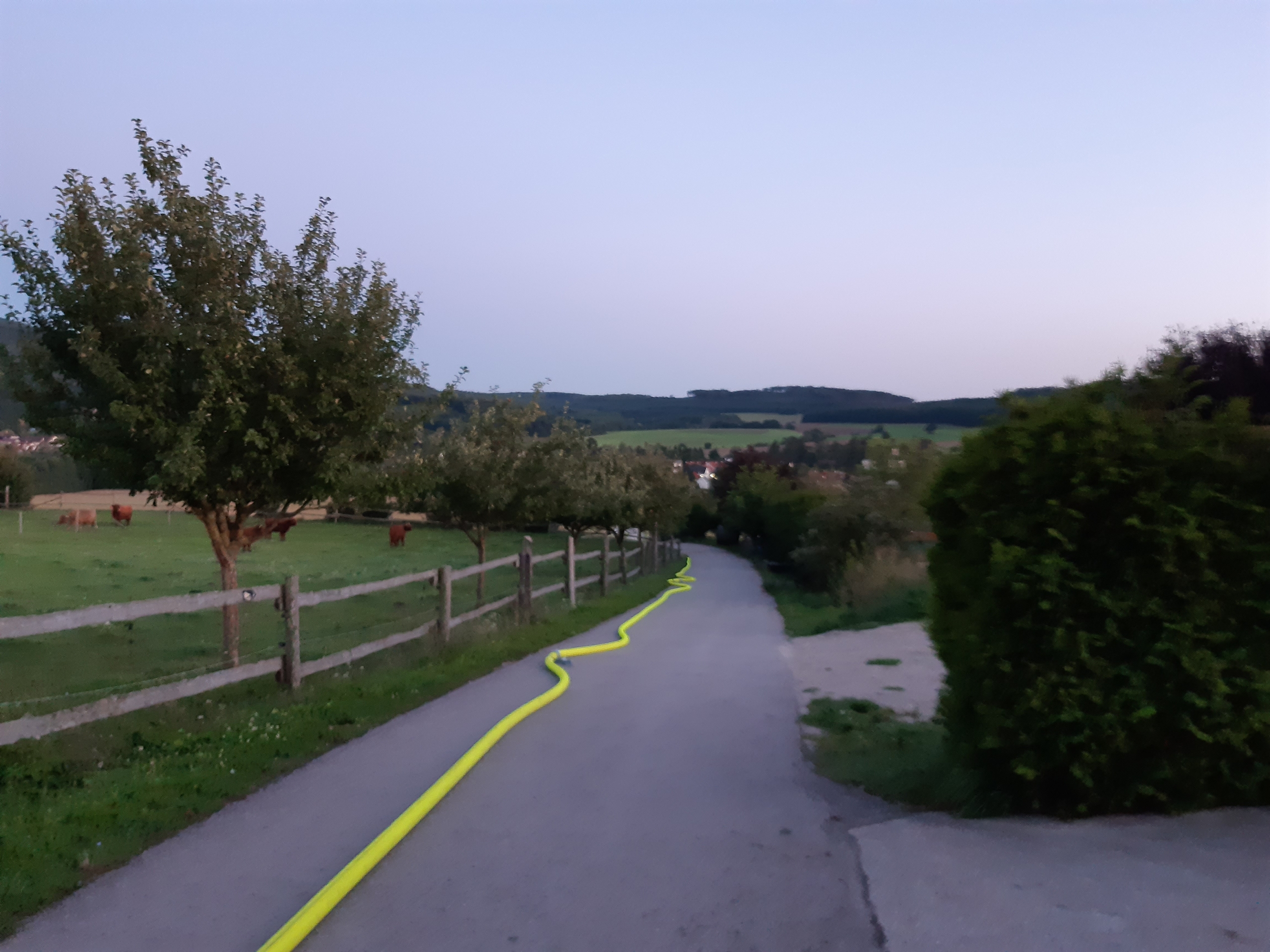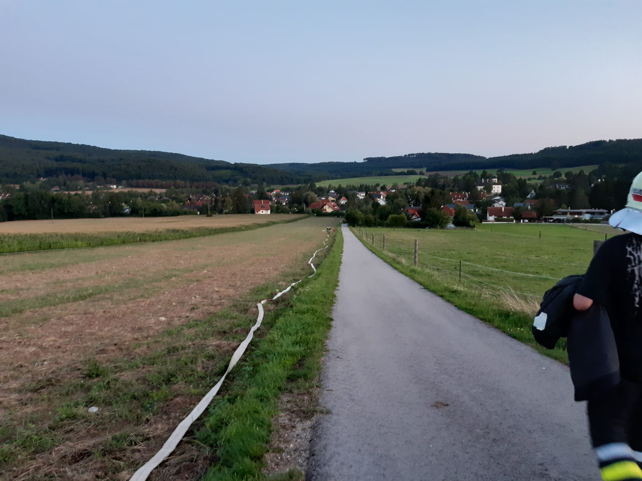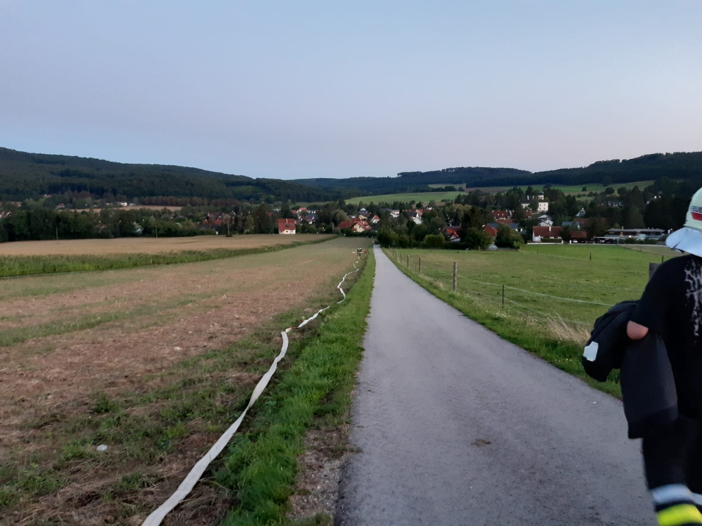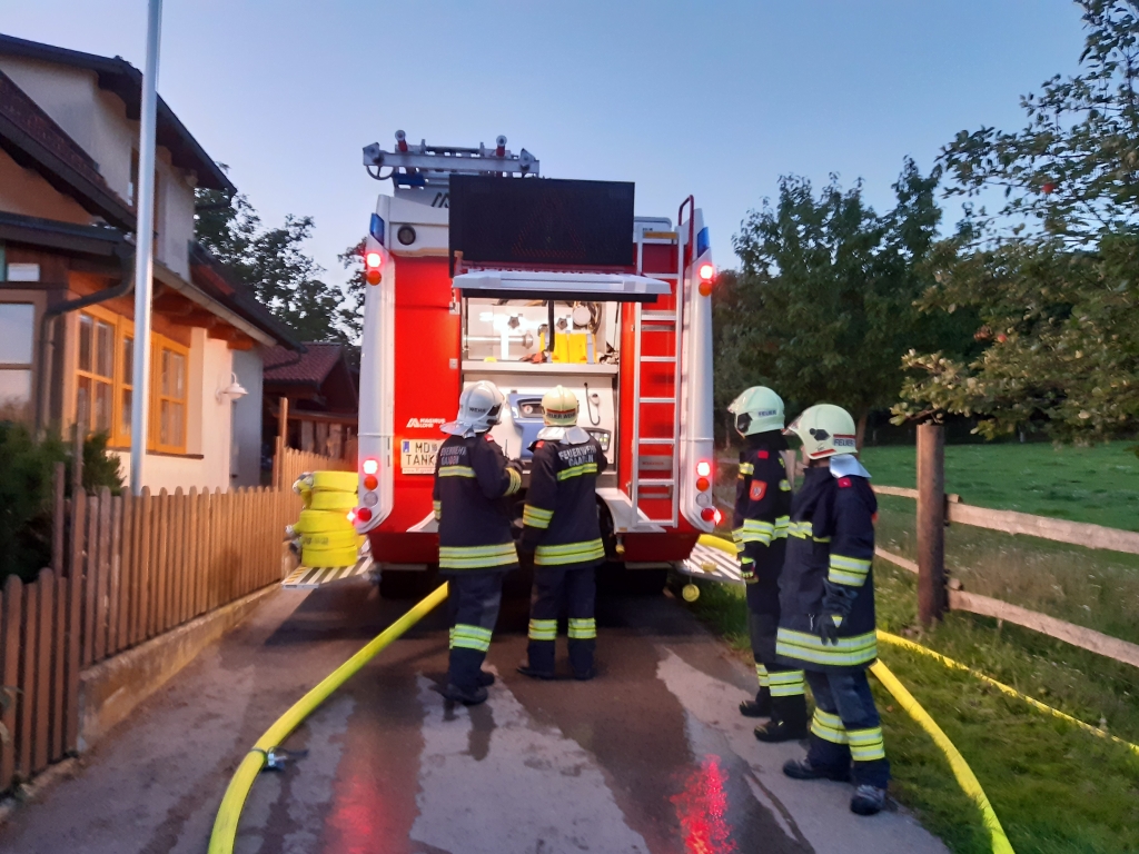 Am 25. August 2021 beübten wir die Förderung von Löschwasser über weitere Strecken. Als Übungsobjekt verwendeten wir diesmal ein Einfamilienhaus samt angrenzendem Pferdestall, welches sich außerhalb einer Wohnsiedlung und direkt am Waldrand befindet. Das gelagerte Stroh, welches eine große Brandlast darstellt, sowie die Entfernung von etwa 450 Metern zum nächstgelegenen Hydrant stellen besondere Herausforderungen bei diesem Objekt dar. Ziel der Übung war es, unter einsatznahen Bedingungen so schnell als Möglich einen Löschangriff zu starten sowie eine stabile Wasserversorgung herzustellen. Dazu wurde eine Zubringleitung mit zwei Löschpumpen aufgebaut und ein Angriff mit zwei C-Rohrer gestartet. Nach Erreichen sämtlicher Übungsvorgaben wurden die Feuerwehrkameraden durch die Hausbewohner noch zu einem Imbiss eingeladen. 15 Mitglieder waren drei Stunden lang im Einsatz.