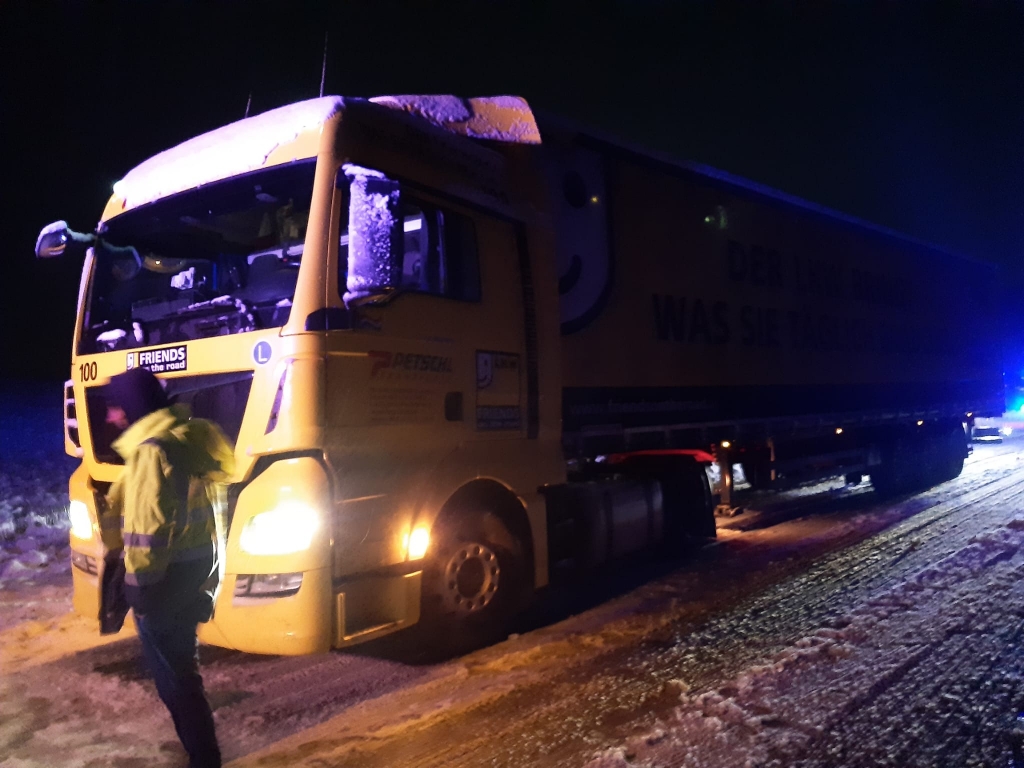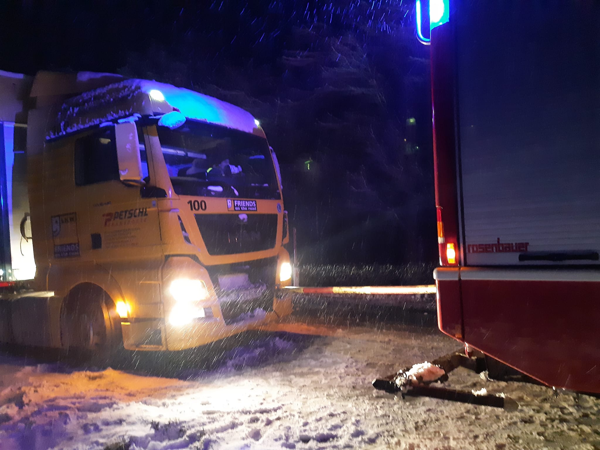 Nach durchgehenden nächtlichen Schneefällen wurden wir am 9. Dezember 2021 um 05:53 Uhr zu einer LKW-Bergung auf die L4010 alarmiert. Der LKW blieb ohne Schneeketten auf der rutschigen Fahrbahn hängen. Kurzerhand konnten wir diesen mittels der Abschleppstange unseres Rüstlöschfahrzeuges auf ein flaches Straßenstück ziehen, wo der Lenker umdrehen und seine Weiterfahrt über die geräumten Straßen Richtung Mödling fortsetzen konnte. Fünf Mitglieder waren mit zwei Fahrzeugen etwa eine Stunde lang im Einsatz.