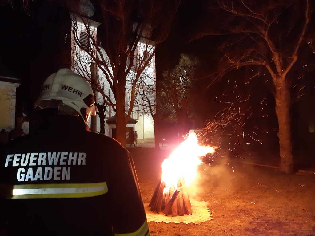 Traditionell entzündeten wir auch heuer wieder das Feuer in der Osternacht vor der Gaadner Kirche. Zehn Kameraden repräsentierten dabei die Freiwillige Feuerwehr und sorgten für den Brandschutz.