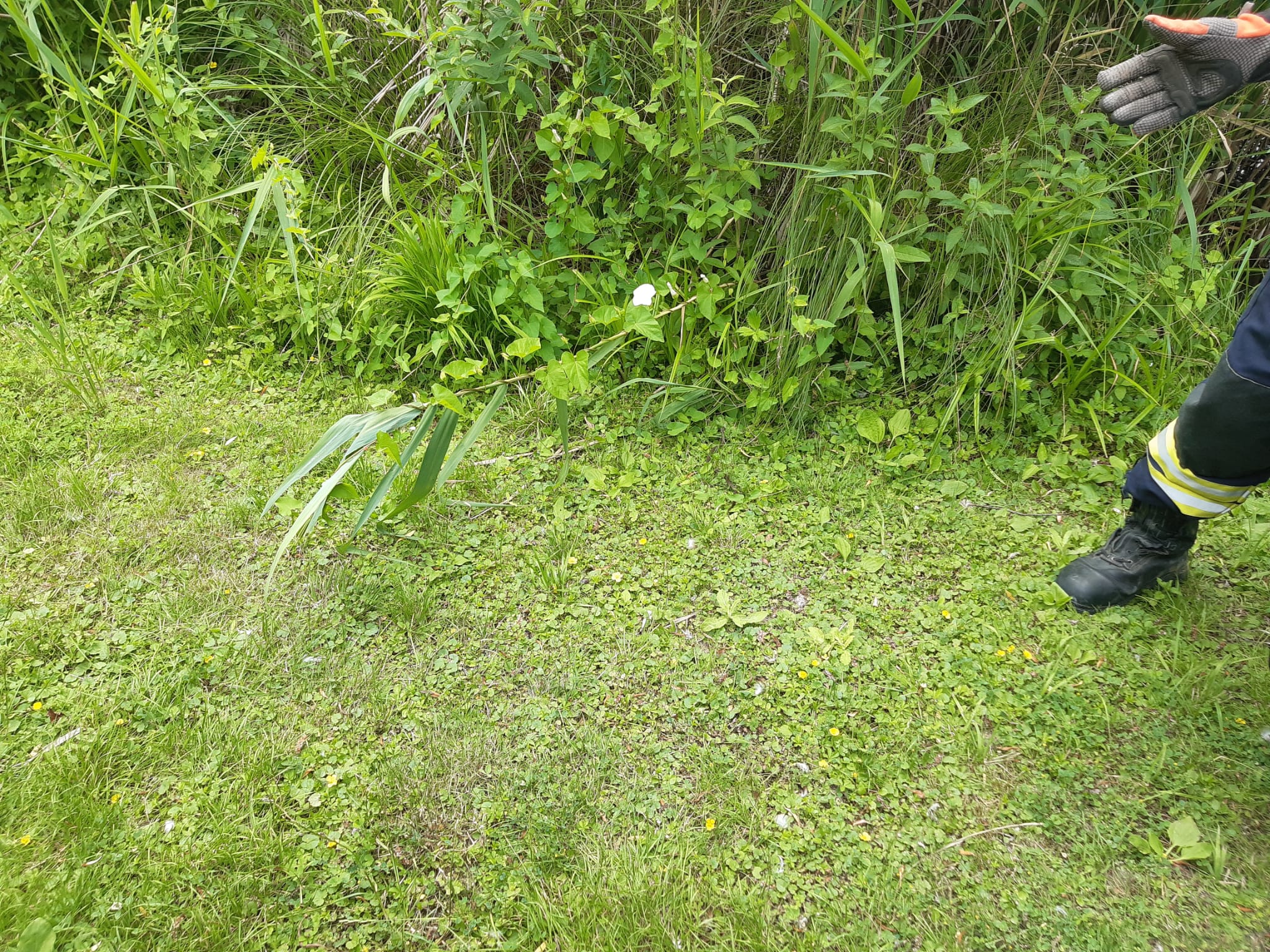 Um 14:52 Uhr erfolgte abermals die selbe Alarmierung. Die Dame gab an, sie habe die Schlange erneut gesehen, weshalb wir uns wieder auf die Suche machten. Nach einiger Zeit konnten wir eine circa 20 cm lange Natter zusammengerollt unter einer Holzverkleidung auffinden. Wir verstauten diese in einem dafür vorgesehenen Sack und ließen sie am Biotop zurück in die Freiheit. Nach einer halben Stunden konnten wir auch diesen Einsatz wieder beenden.