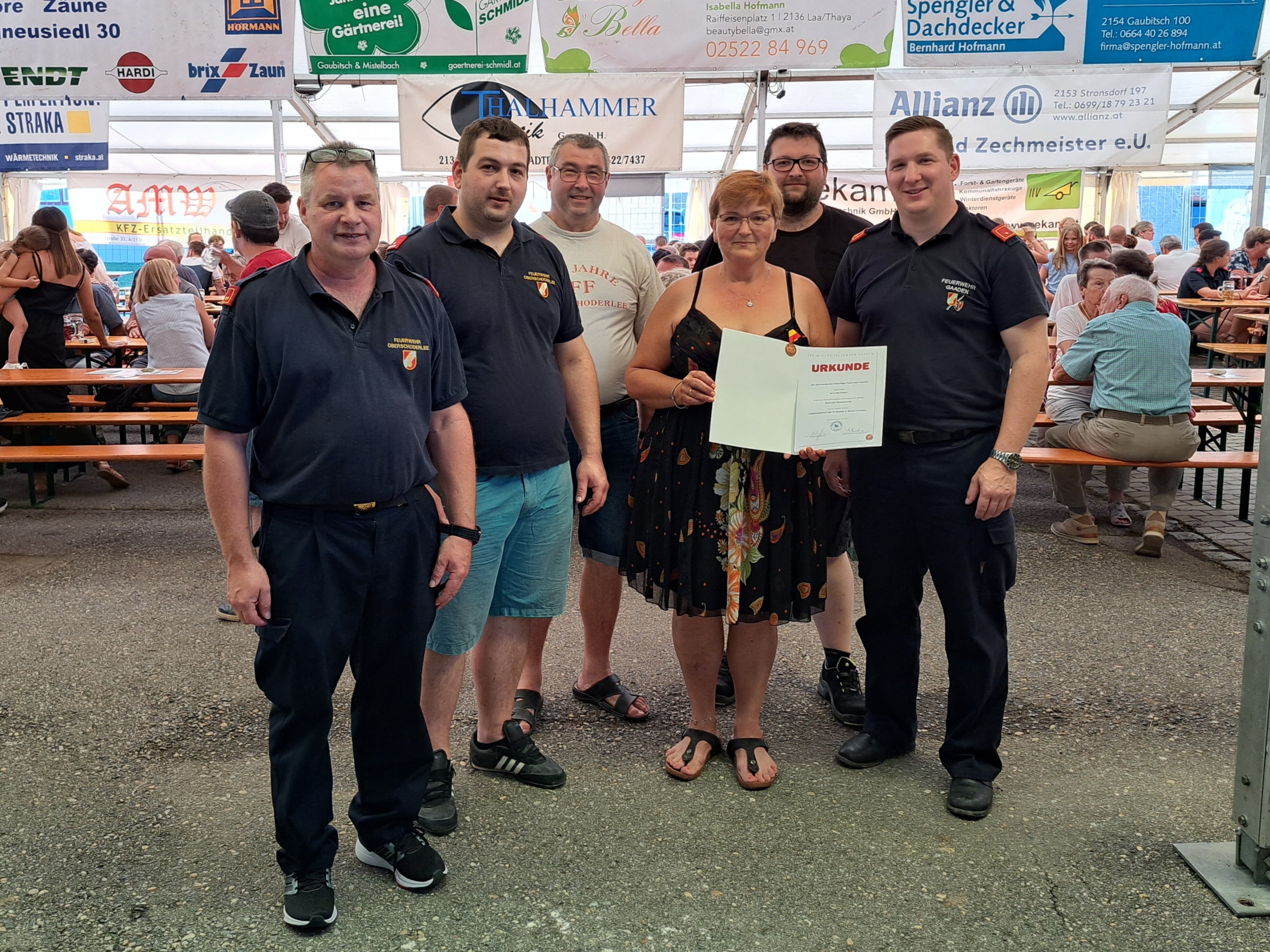 Am Wochenende des 1. bis 3. Juli 2022 besuchten sechs Mitglieder der Freiwilligen Feuerwehr Gaaden die Kameraden der Partnerfeuerwehr Oberschoderlee im Bezirk Mistelbach bei ihrem Feuerwehrfest. Seit der Gründung dieser Partnerschaft im Jahr 1991 finden regelmäßig gegenseitige Besuche der Feste und Aktivitäten beider Feuerwehren statt. Aus diesem Grund wurden im Zuge der Feldmesse am Sonntag einige Kameraden für ihre treue Kameradschaft vom Kommando der FF Gaaden ausgezeichnet: