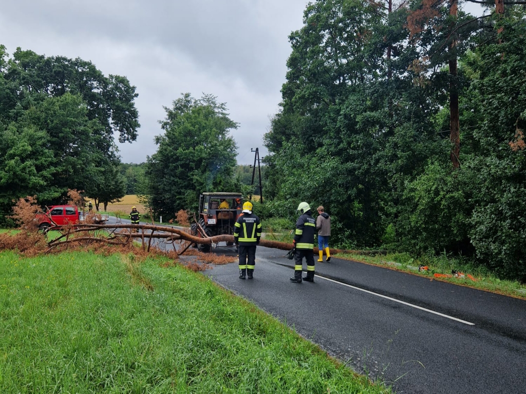 Am 5. August 2023 wurden wir um 15:00 Uhr auf die Landesstraße 2099 Richtung Siegenfeld gerufen, da aufgrund des starken Windes mehrere Bäume umzustürzen drohten. Nach Begutachtung der Bäume entschieden wir uns zum unverzüglichen Fällen, um ein Umstürzen auf die Fahrbahn und die damit verbundenen Gefahren zu verhindern. In kameradschaftlicher Zusammenarbeit konnten die Bäume rasch und unkompliziert umgeschnitten werden – dafür wurden durch die Feuerwehrmitglieder kurzerhand auch private Maschinen und Gerätschaften (Traktor mit Forstseilwinde, Motorsägen) zu Verüfgung gestellt. Nach knapp zwei Stunden wurde der Einsatz beendet und neun Kameraden konnten mit zwei Einsatzfahrzeugen wieder ins Feuerwehrhaus einrücken.