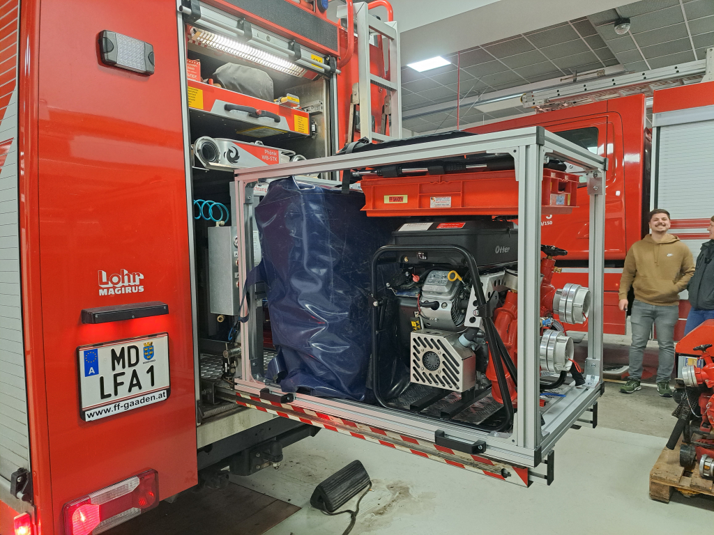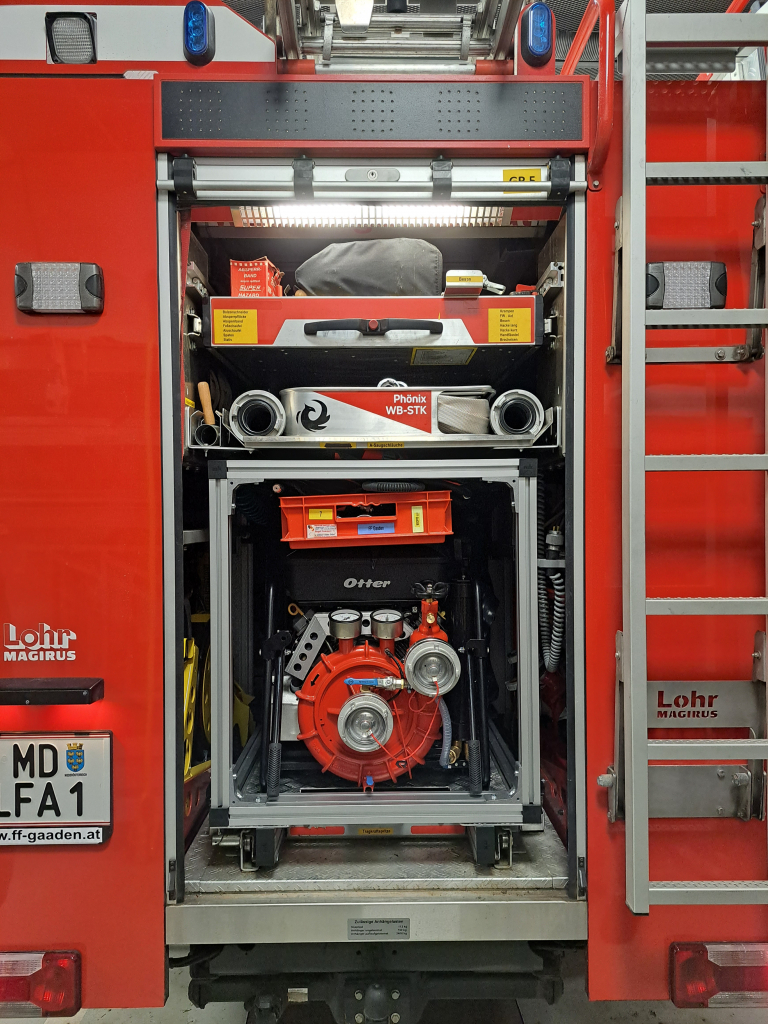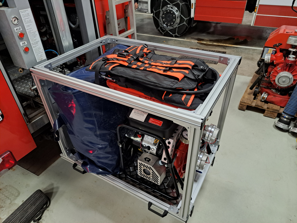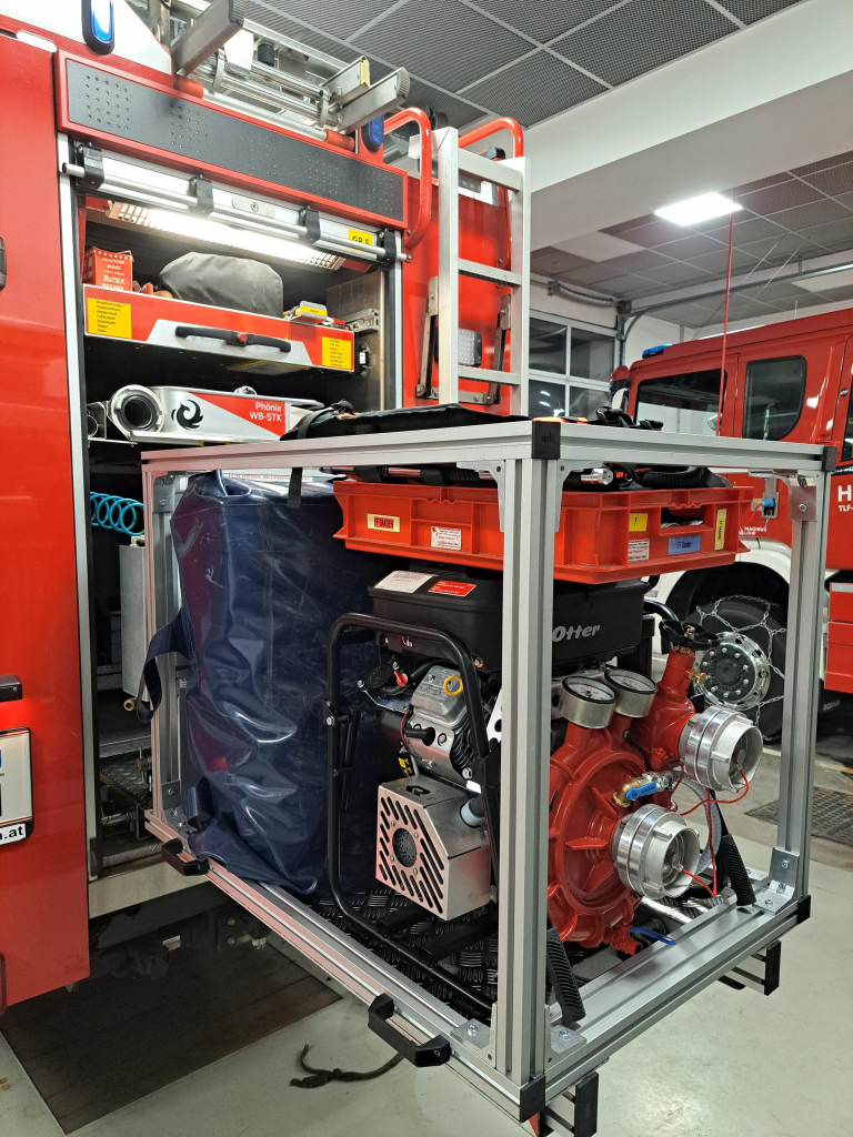 Der Aufbau wurde passgenau an das pneumatisch absenkbare Schienengestell der Tragkraftspritze angepasst, wodurch je nach Einsatzlage ein einfacher und rascher Wechsel durch zwei Personen möglich ist. Die technische Erweiterung des Einsatzfahrzeuges erlaubt es uns künftig, dieses als „Löschfahrzeug Waldbrand“ zu verwenden und noch rascher und effizienter auf Waldbrandszenarien reagieren zu können.