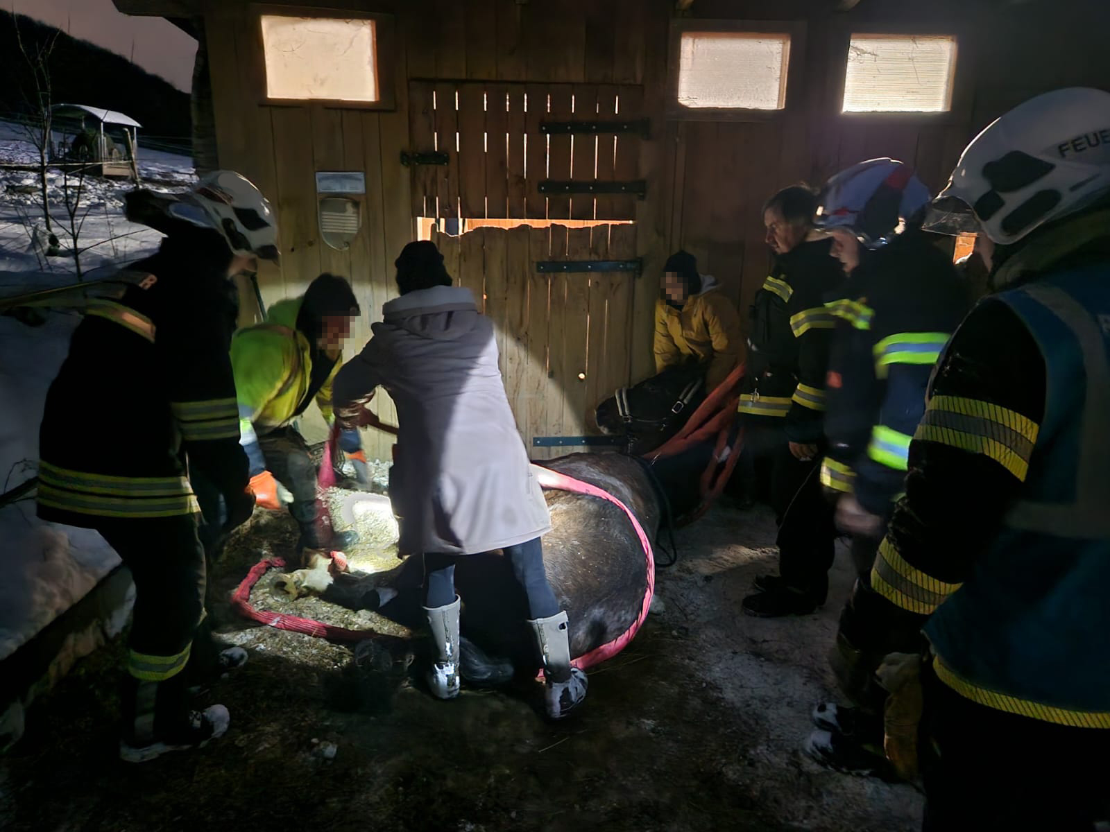Am 4. Dezember 2023 wurden wir um 16:20 Uhr, unterstützend zur Freiwilligen Feuerwehr Sittendorf, zu einer Tierrettung nach Sittendorf alarmiert. Ein Pferd war in einem Stall zu Sturz gekommen und konnte aufgrund der knappen Bodenlage zu einer Wand nicht mehr selbstständig aufstehen. Nach Rücksprache mit einem ebenfalls anwesenden Tierarzt wurde das Pferd mittels zwei Rundschlingen, viel Körperkraft und etwas Gefühl soweit unterstützt, dass es schlussendlich wieder auf die Beine kam. Nach kurzer Zeit konnten die vier Mitglieder der Freiwilligen Feuerwehr Gaaden den Einsatz wieder beenden und ins Feuerwehrhaus einrücken.