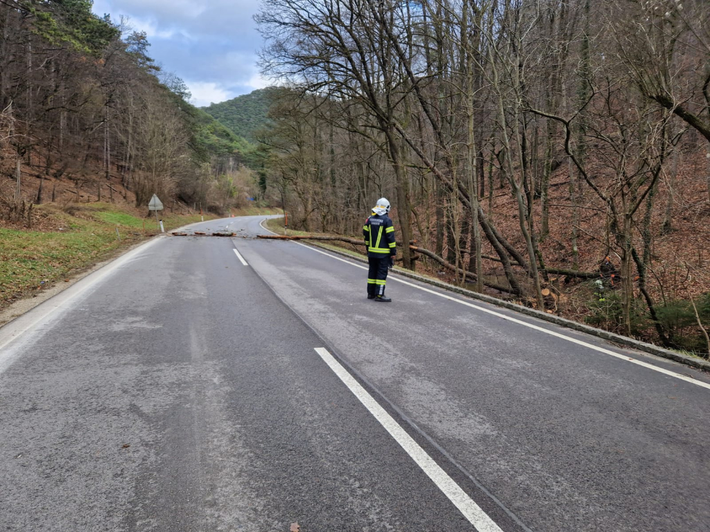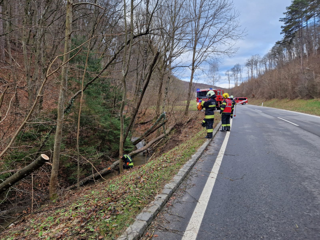 Nur einige Stunden nach Beendigung des ersten Einsatz an diesem Tag, wurden wir am 24. Dezember 2023 um 09:13 Uhr zu einem weiteren Sturmschaden alarmiert. Diesmal drohten mehrere Bäume auf der L2097 in Richtung Sparbach auf die Straße zu stürzen. Nach Beurteilung der Lage entschieden wir uns, diese mittels Kettensäge und Seilwinde umzuschneiden, um eine mögliche Gefährdung für den Straßenverkehr zu verhindern. Nach eineinhalb Stunden konnten zwölf Feuerwehrmitglieder ihre Tätigkeit beenden, wobei die Serie nach fünf Einsätzen ihr Ende fand, und sich die Kameradinnen und Kameraden anschließend auf das bevorstehende Weihnachtsfest einstimmen konnten.