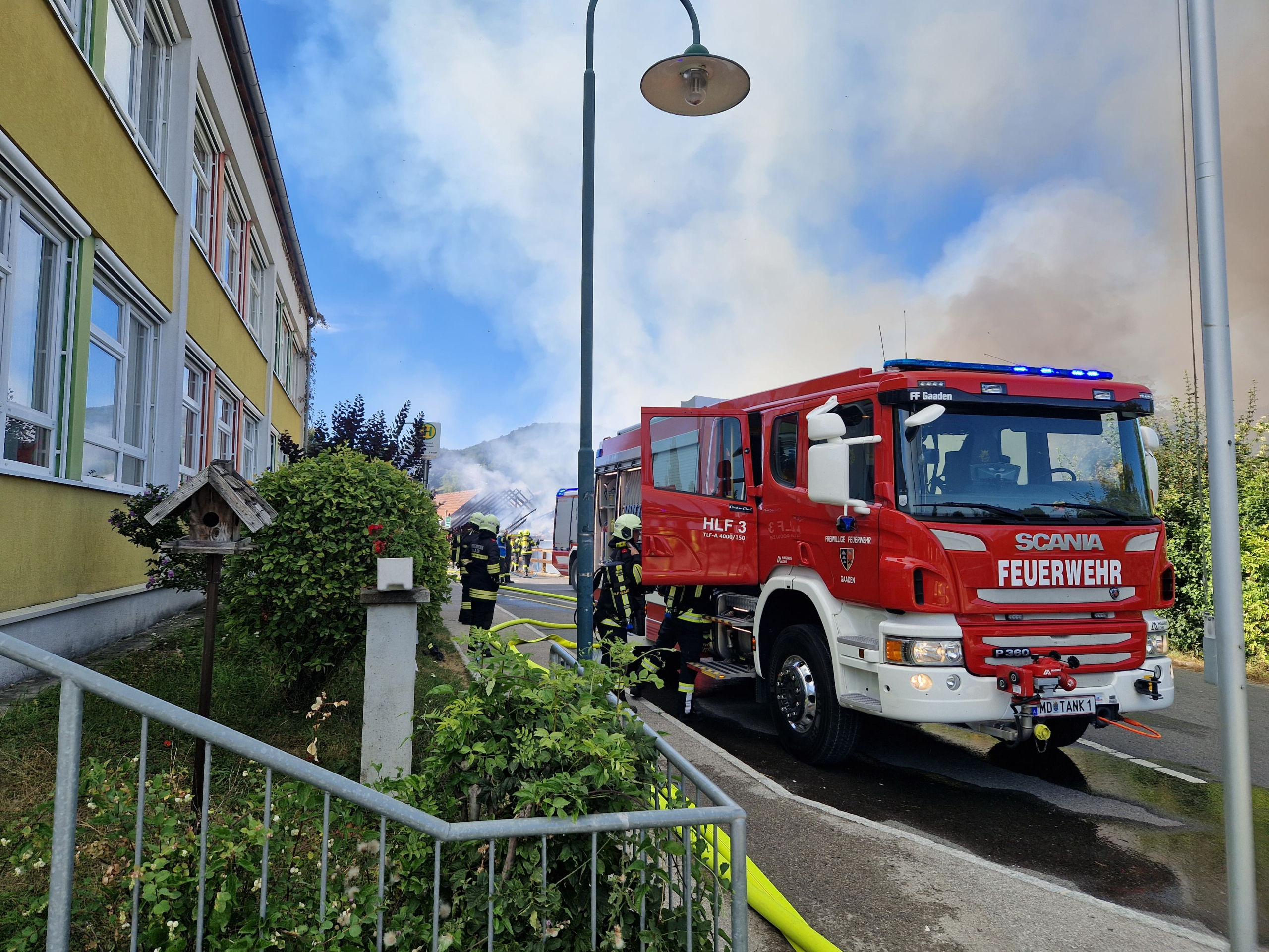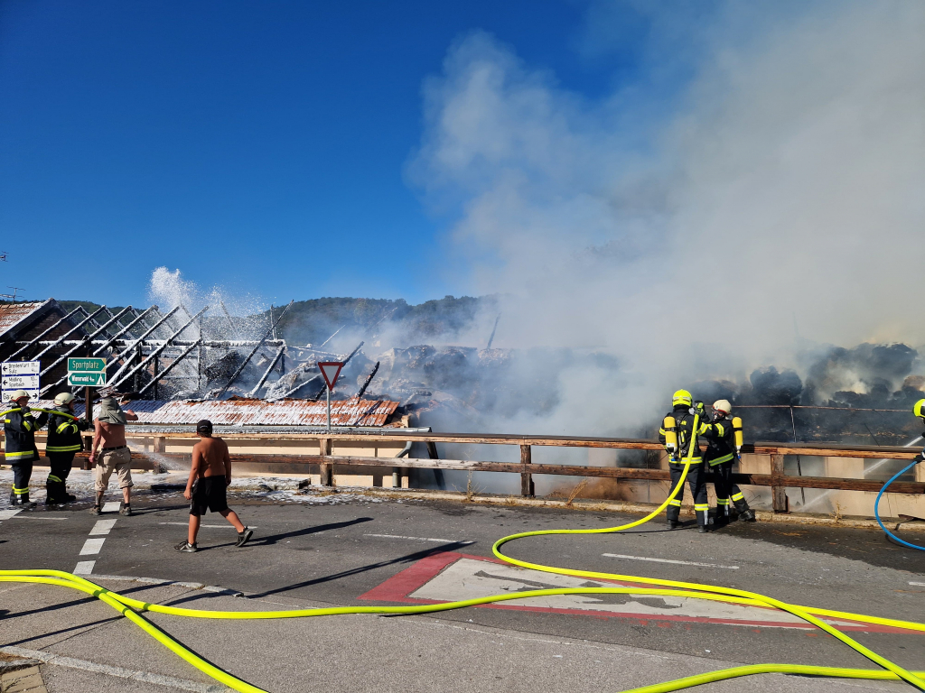 Am 30. Juli 2024 kam es gegen 16:00 Uhr im Ortskern von Sittendorf zu einem Großbrand einer landwirtschaftlichen Halle, zu welchem wir um 16:20 Uhr unterstützend alarmiert wurden. Nur einige Minuten nach der Alarmierung rückten wir mit unserem RLF, dem HLF3 sowie in weiterer Folge auch mit dem LF sowie dem LAST zum Einsatzort aus. Bei unserem Eintreffen stand die besagte Halle, in welcher eine große Menge an Heuballen gelagert wurde, bereits in Vollbrand und es erfolgten die ersten Löschangriffe der bereits anwesenden Feuerwehren.