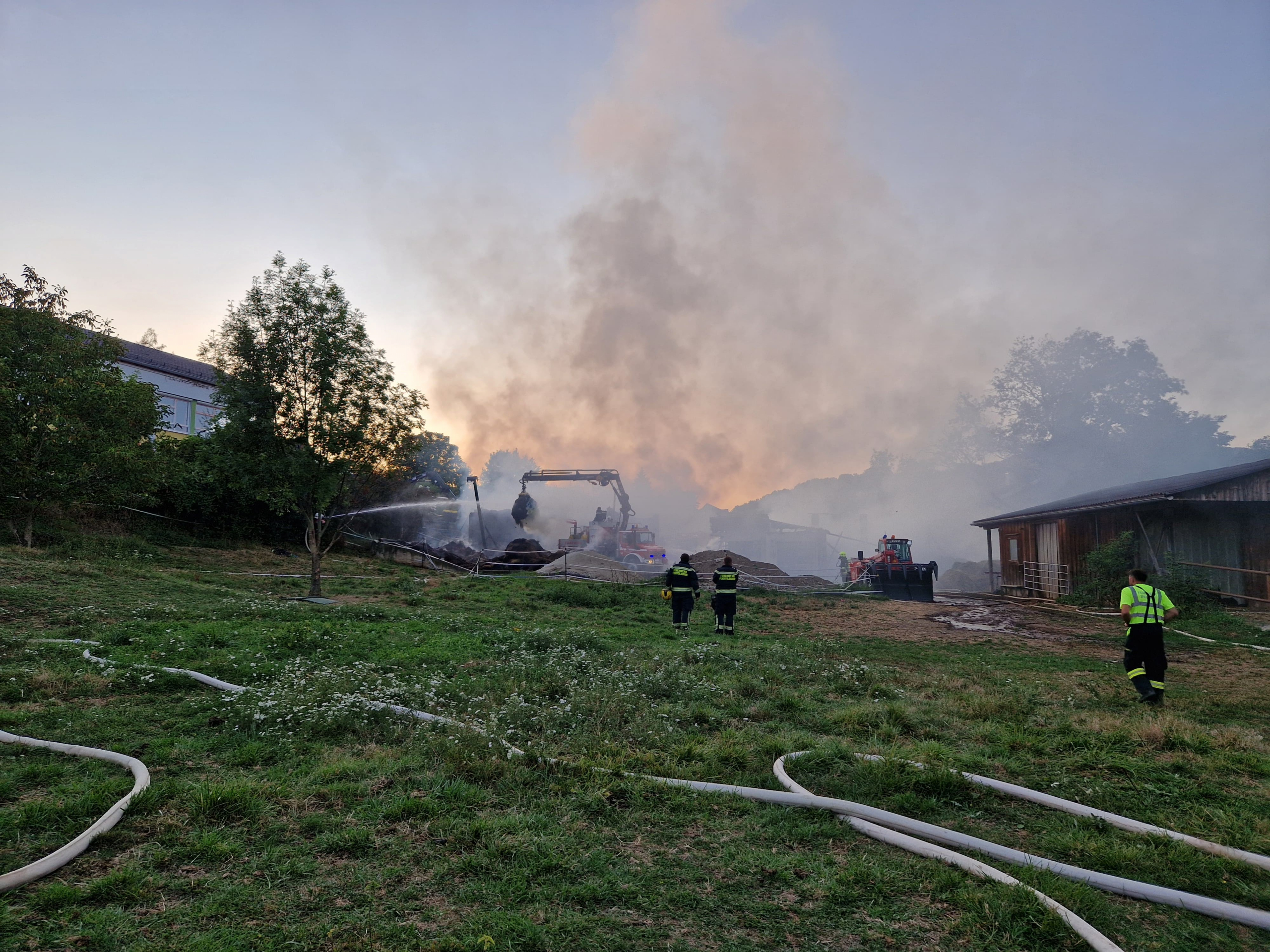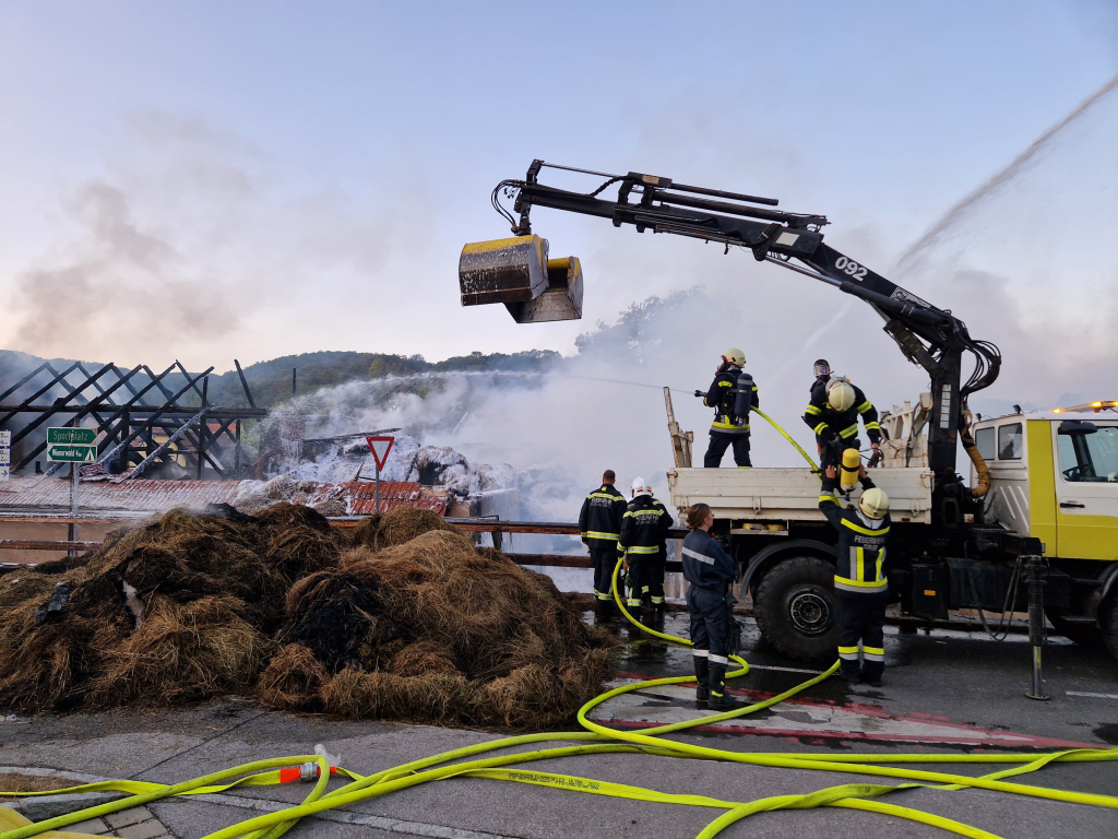 Gegen 23:00 Uhr, also etwa sieben Stunden nach Einsatzbeginn, konnte der Brand soweit unter Kontrolle gebracht werden, dass ein Großteil der unterstützenden Feuerwehren vorerst abrücken konnte. Während der gesamten Nacht wurden weitere Löscharbeiten durchgeführt, die bis in die Morgenstunden andauernden. Um 07:21 Uhr Früh erfolgte abermals die Alarmierung der Freiwilligen Feuerwehr Gaaden, um die bereits erschöpften Kräfte am Brandort abzulösen. Erneute rückte eine Fahrzeugbesatzung aus, um die Nachlöscharbeiten an den noch immer in Brand stehenden Heuballen zu unterstützen. Nach weiteren acht Einsatzstunden, gegen 15:00 Uhr, konnte durch die Einsatzleitung „Brand aus“ gegeben werden, woraufhin wir unseren Einsatz beenden konnten. Im Anschluss stellten unsere Mitglieder die Einsatzbereitschaft der Fahrzeuge wieder her und begannen mit der ersten Reinigung der eingesetzten Gerätschaften und Schläuche.