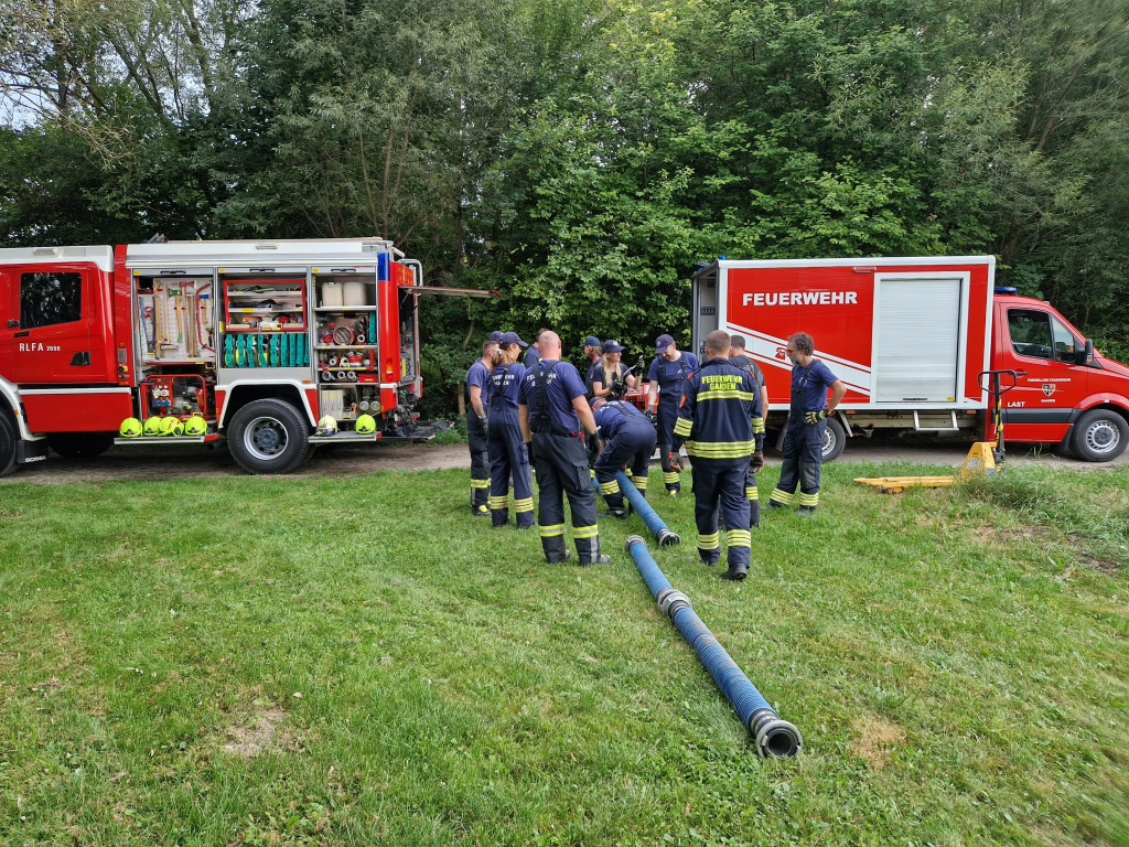 Am 20. August 2025 folgten 13 Kameradinnen und Kameraden der Einladung zur Monatsübung, bei welcher der Pumpenbetrieb im Feuerwehrdienst behandelt wurde. Dazu wurden die Teilnehmer im Umgang sowie den Betrieb mit den Fahzeugpumpen, der Tragkraftspritze sowie der Rosenbauer Otter geschult und das Erlernte im Anschluss durch Herstellen einer Saug- sowie Angriffsleitung praktisch beübt. Nach etwa zweieinhalb Stunden konnte die Übung erfolgreich abgeschlossen werden.
