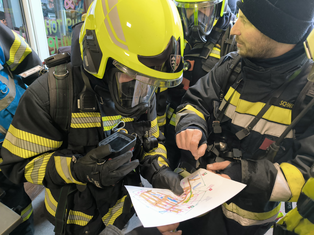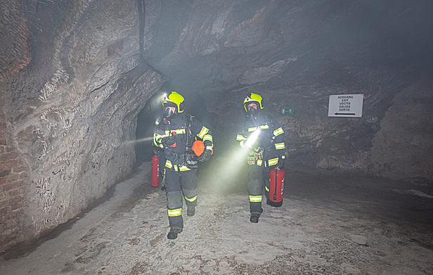 Unverzüglich wurden mehrere Atemschutztrupps gebildet, wobei seitens der Freiwilligen Feuerwehr Gaaden acht Atemschutzgeräteträger gestellt wurden. Die Orientierung, Sicherung des Rückzugsweges sowie die Suche nach dem Brandherd gestalteten sich aufgrund der massiven Rauchentwicklung mit damit verbundener Nullsicht und den verzweigten Stollengängen äußerst schwierig. Diese Situation verlangte von den eingesetzten Feuerwehrmitgliedern höchste Konzentration sowie große körperliche Belastbarkeit.