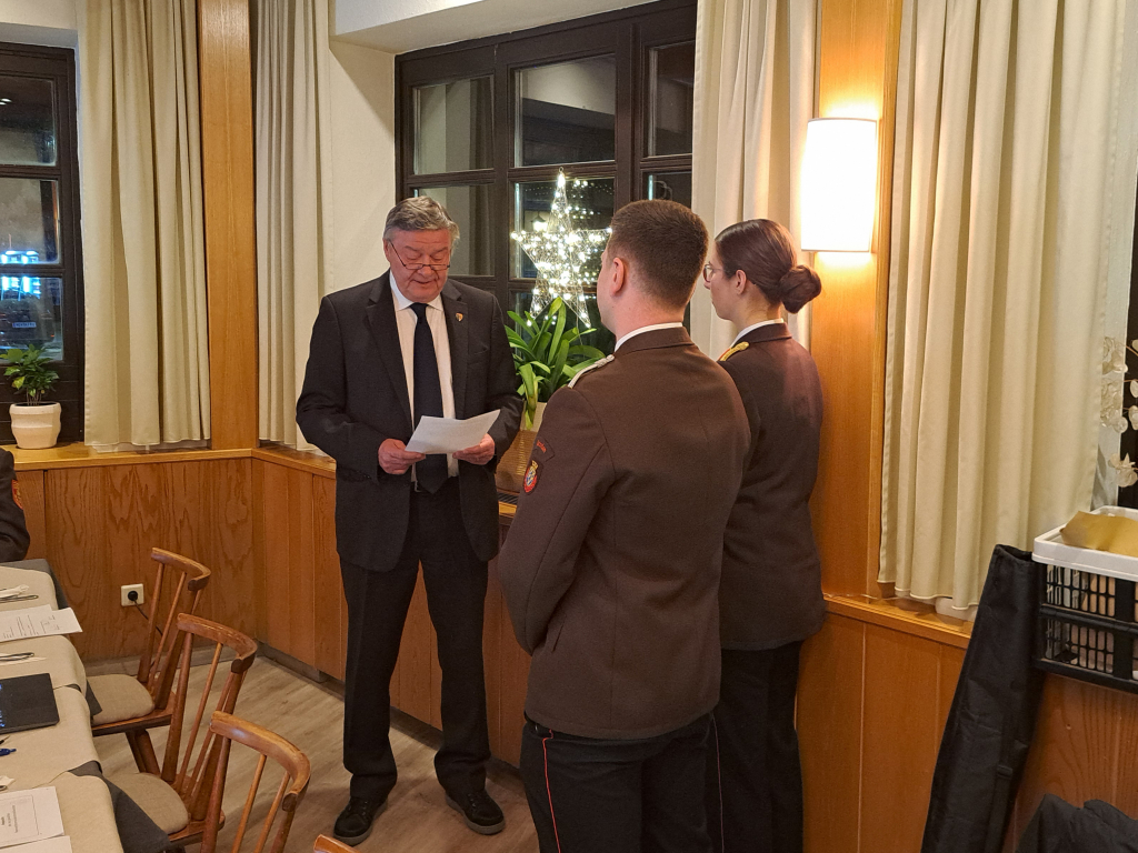 Nach dem ausführlichen Finanzbericht des Kassiers FT DI (FH) Nikolaus Erben berichteten die beiden Kassaprüfer über die ordnungsgemäße Gebarungsprüfung. Anschließend wurde LM Michael Lautermüller zum Brandmeister befördert sowie FT Nikolaus Erben seitens des Bezirkskommandos zwei Verdienstzeichen für Katastropheneinsätze im Ausland verliehen – herzliche Gratulation!