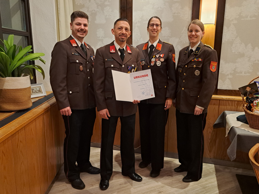 Für seine langjährigen und verdienstvollen Leistungen wurde Alexander Hlousek vom Bezirksfeuerwehrkommando mit der Verdienstmedaille 3. Klasse in Bronze des NÖ Landesfeuerwehrverbandes ausgezeichnet. Zusätzlich verlieh ihm das neue Feuerwehrkommando das Verdienstzeichen der FF Gaaden 1. Klasse in Gold. Als Zeichen des Dankes erhielt er außerdem einen Geschenkskorb sowie einen personalisierten Einsatzhelm.