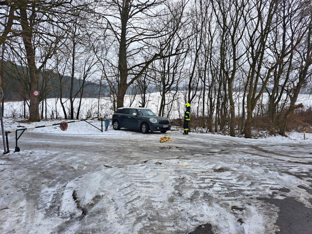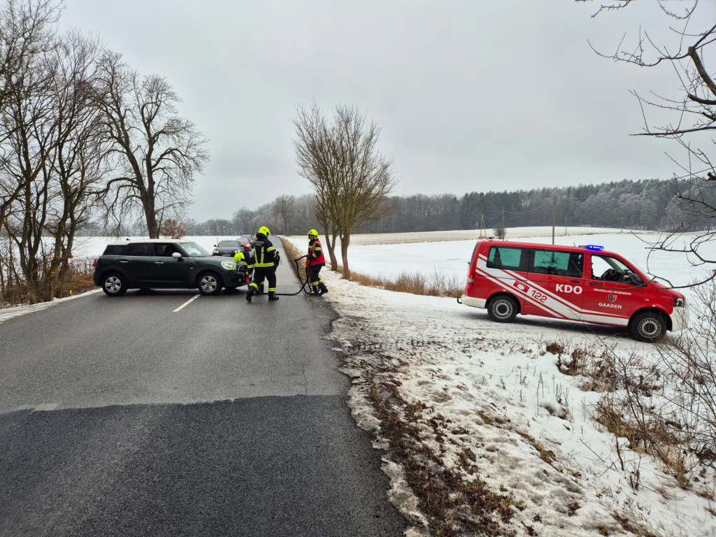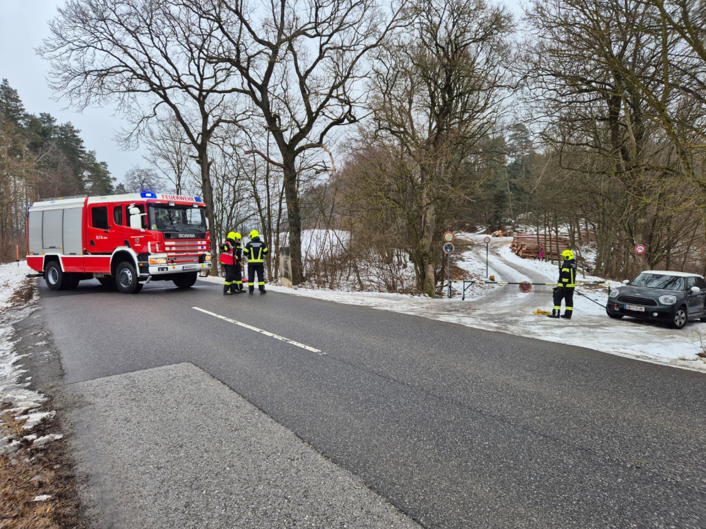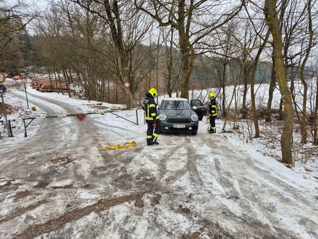 Am 24. Jänner 2026 wurden wir um 12:30 Uhr zu einer Fahrzeugbergung auf der Landesstraße zwischen Gaaden und Siegenfeld alarmiert. Ein PKW-Lenker wollte von der Straße rückwärts auf einen vollständig vereisten Waldweg zufahren. Dabei geriet das Fahrzeug ins Rutschen und kollidierte schließlich heckseitig mit einem dort befindlichen Schranken. Mithilfe eines Bergeseils und unseres Kommandofahrzeugs konnte der PKW rasch zurück auf die Fahrbahn gezogen werden. Der Einsatz war nach rund 45 Minuten abgeschlossen – sechs Mitglieder standen mit zwei Fahrzeugen im Einsatz.