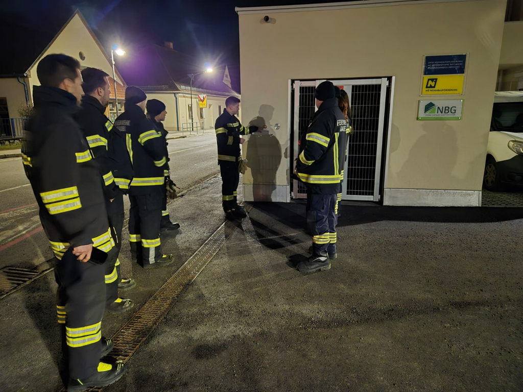 Da im Ernstfall eine gute Ortskenntnis für eine rasche und effiziente Bewältigung von Einsätzen äußerst wichtig ist, führten wir am 18. Februar 2026 im Zuge unserer Monatsübung eine Begehung der neuen Wohnhausanlage in der Hauptstraße 8c/8d durch. Unser Hauptaugenmerk lag dabei auf dem Kennenlernen des Gebäudeaufbaus, der Aufstellflächen für Feuerwehrfahrzeuge, der brandschutztechnischen Einrichtungen sowie der Flucht-, Rettungs- und Angriffswege. Ebenso wurden die Tiefgarage, die Aufzugsanlagen und weitere einsatzrelevante Bereiche besichtigt. Insgesamt nahmen neun Feuerwehrmitglieder an der rund zweistündigen Übung teil.
