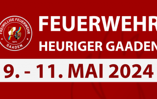 Feuerwehr-Heuriger Gaaden 2024Donnerstag, 9. Mai 202411-14 Uhr: Frühschoppen mit der Gaadner Blasmusik14-19 Uhr: Festbetrieb im Heurigenzelt19-24 Uhr: Unterhaltung mit "FM Wienerwald"Freitag, 10. Mai 2024ab 18 Uhr: Festbetrieb im Heurigenzelt19-24 Uhr: Unterhaltung mit "Fields of Joy"Samstag, 11. Mai 2024ab 18 Uhr: Festbetrieb im Heurigenzelt19-24 Uhr: Unterhaltung mit "Having Fun"Tombola-Verlosung mit täglich herrlichen PreisenBarbetrieb mit ausgesuchten Weinen und [...]