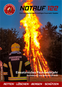 Jedes Jahr erscheint unser Feuerwehrmagazin Notruf 122, welches kostenlos an alle Gaadner Haushalte zugestellt wird. Hier finden Sie die aktuellen Versionen zum Download.